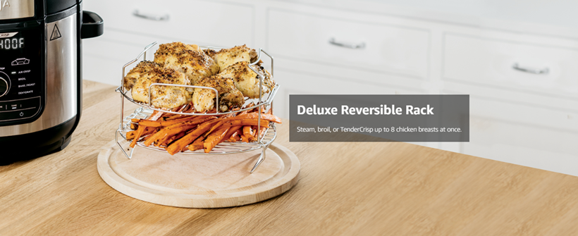 • DELUXE REVERSIBLE RACK: Steam and broil, as well as TenderCrisp up to 8 chicken breasts at once or add servings to layered 360.