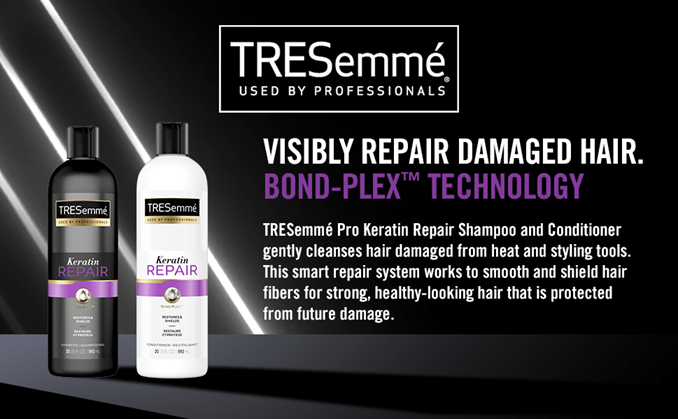 • TRESemmé Pro Keratin Repair Shampoo is a hair treatment that visibly repairs hair from styling and heat damage with smart Bond Plex technology