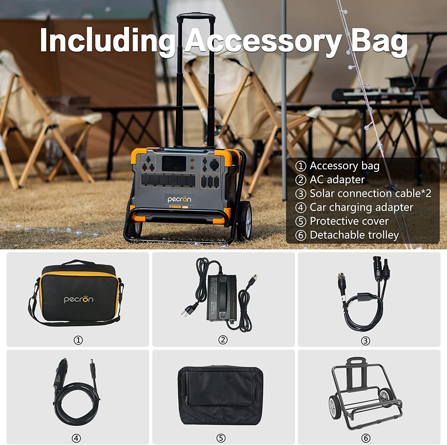 • What You Get: 24-month worry-free warranty and 24hrs/7d friendly customer service. pecron E2000LFP portable power station,Accessory Pack,AC Power adapter ,5-Pin Aviation Plug To MC4 Solar Charging Cable*2;Car Charger cable;User manual.
