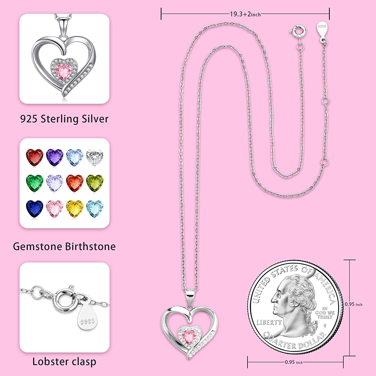 S925 STERLING SILVER Necklace: Heart pendant necklace made of S925 sterling silver, with birthstone is an unique and heartfelt fashionable jewelry beautifully packaged and ready for gift giving.