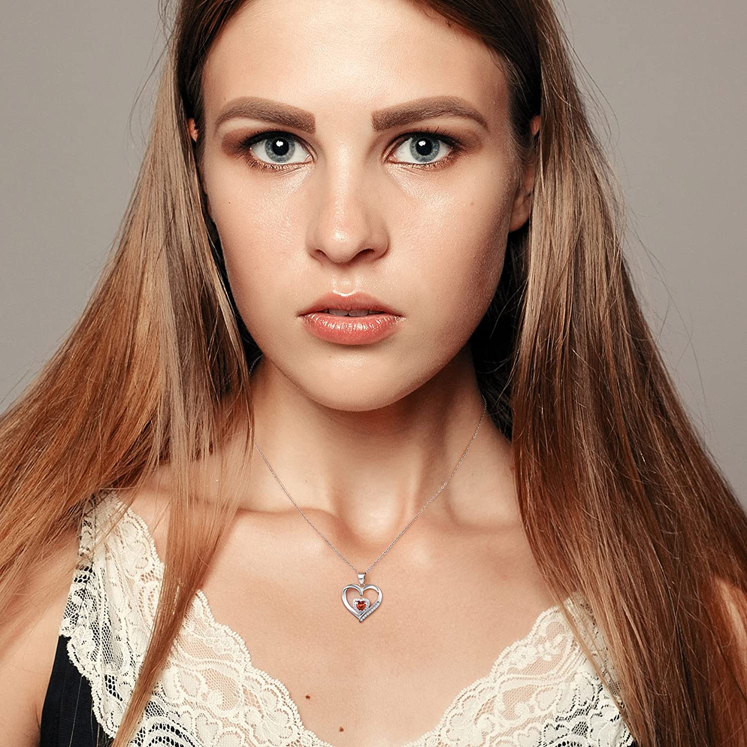 Heart Birthstone Necklace for Women, S925 Sterling Silver Necklace Birthstone Necklace Heart Necklace for Women Teen Girls Birthday Jewelry Gifts for Women Teen Girls