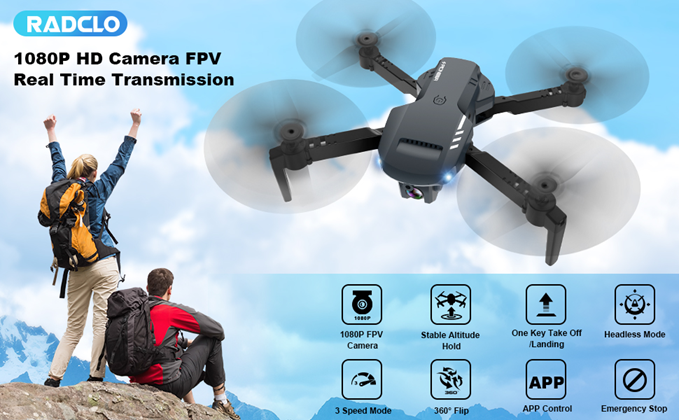 • 【1080P Adjustable FPV Drone & APP Control】Equipped with a 1080P HD 90° manually adjustable lens, the drone provides a wider breathtaking field of view. It assists you to catch every wonderful moment from a birds-eye perspective, and lets you enjoy 1080P HD pictures and videos via the “RADCLOFPV” APP. By connecting your phone/iPad with the long-distance drones with cameras, you can enjoy a real-time panoramic view, and share them on your social media with ease.