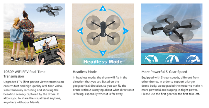 • 【Easy To Use with Stable Altitude Hold Function】: Just click the one key take-off/landing button to start flying. Compared to other drones of the same type, we have a more powerful engine, and more stable hover technology, the Altitude Hold function can keep the drone at a certain altitude for easy control fly, and shoot high-quality footage.