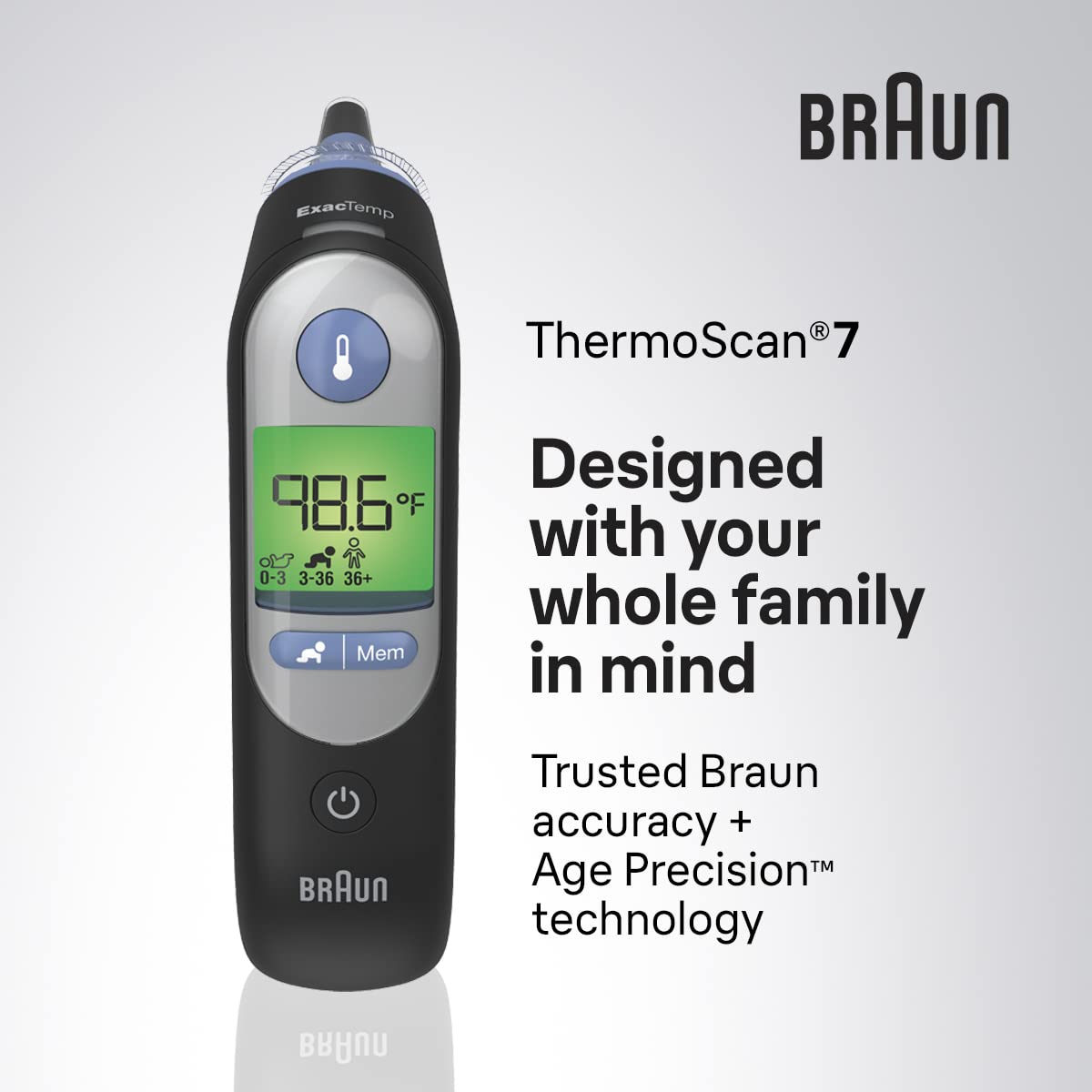 - QUICK RESULTS – Get results in seconds with the Braun ThermoScan 7 Digital Thermometer. This ear thermometer for adults and kids uses Age Precision Technology for age-adjustable fever guidance. Easily interpret results with the color-coded display.