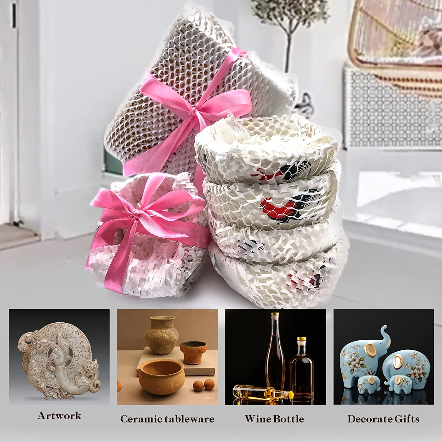 Wide range of uses: Honeycomb cushioning paper is suitable for packaging fragile or need to protect items, ceramic tableware, cups, plates, vases, wine box packaging, artwork, etc. Good cushioning properties are used to keep items intact and effectively reduce fragility Products collide with each other and cause rupture.