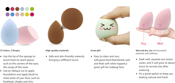 • 【High Quality】Our makeup sponge set is made of latex-free multi-color material, soft to the touch, please gently pat to create a gorgeous makeup.