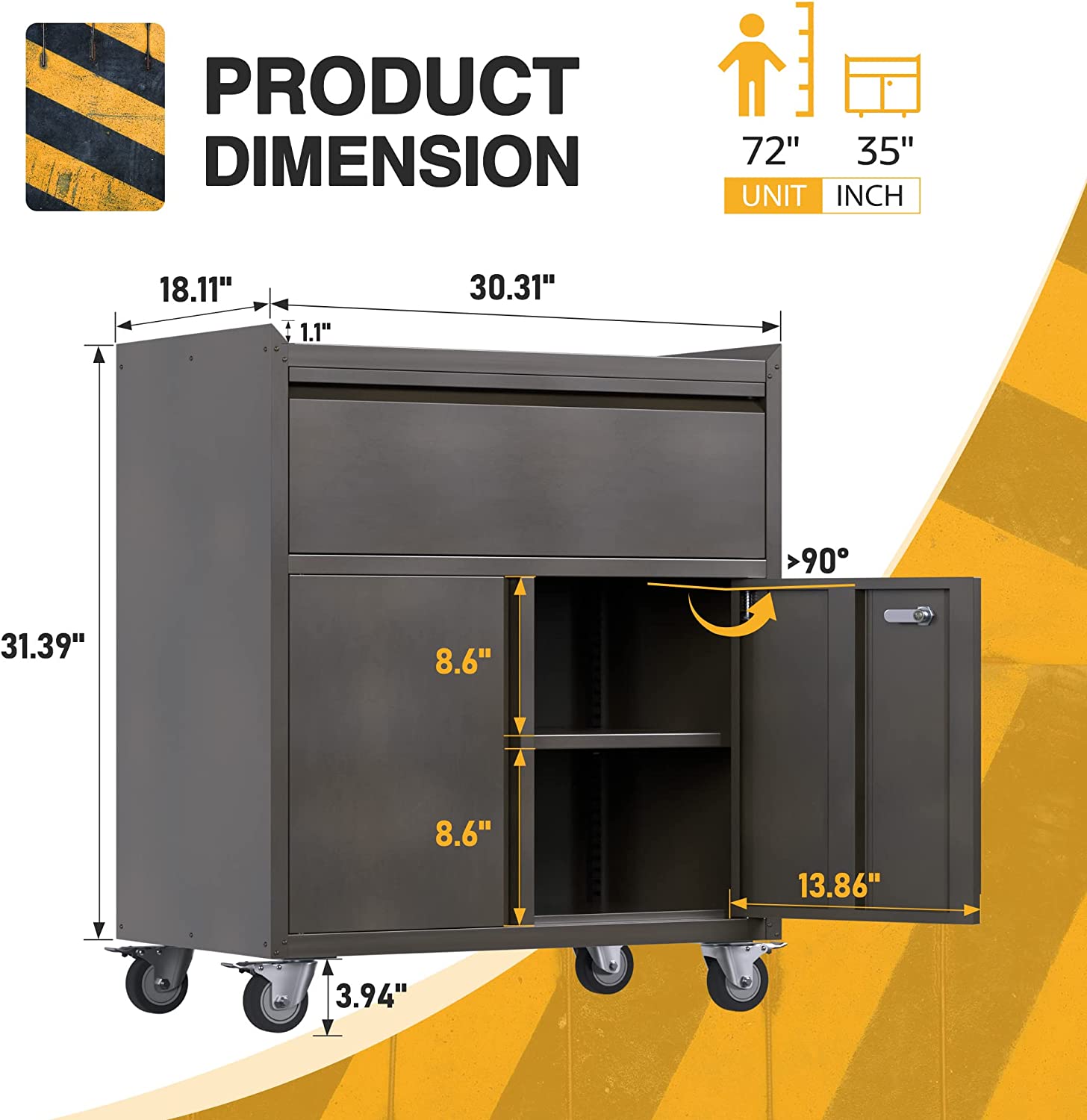 【Tool Cabinet with Workbench】Storage cabinet size: 18 "D x 30 "W x 35.5 "H, can store many commonly used tools in the garage, occupy little space and make the garage environment more neat and tidy. The cabinet also comes with a workbench, which is perfect for garage use.