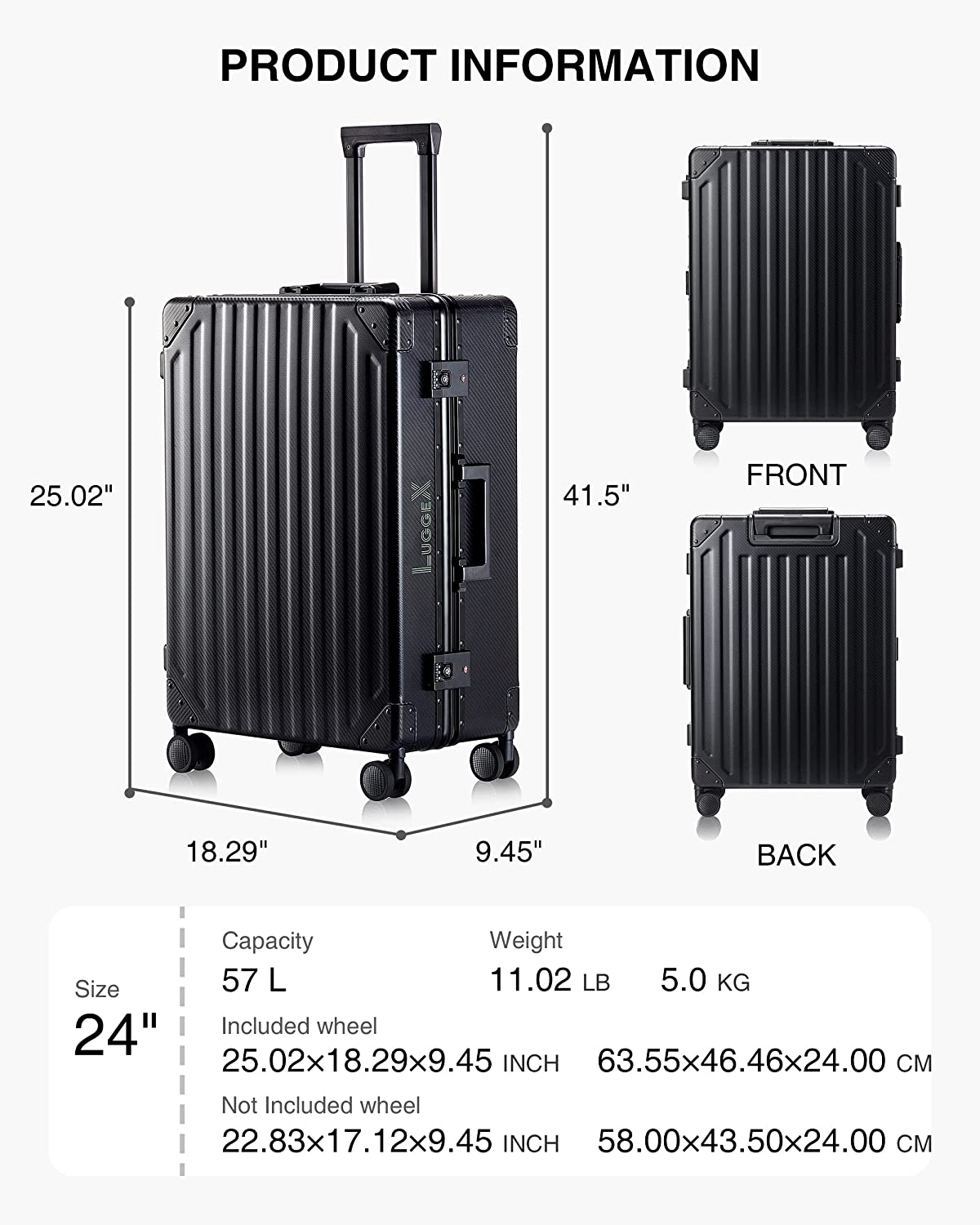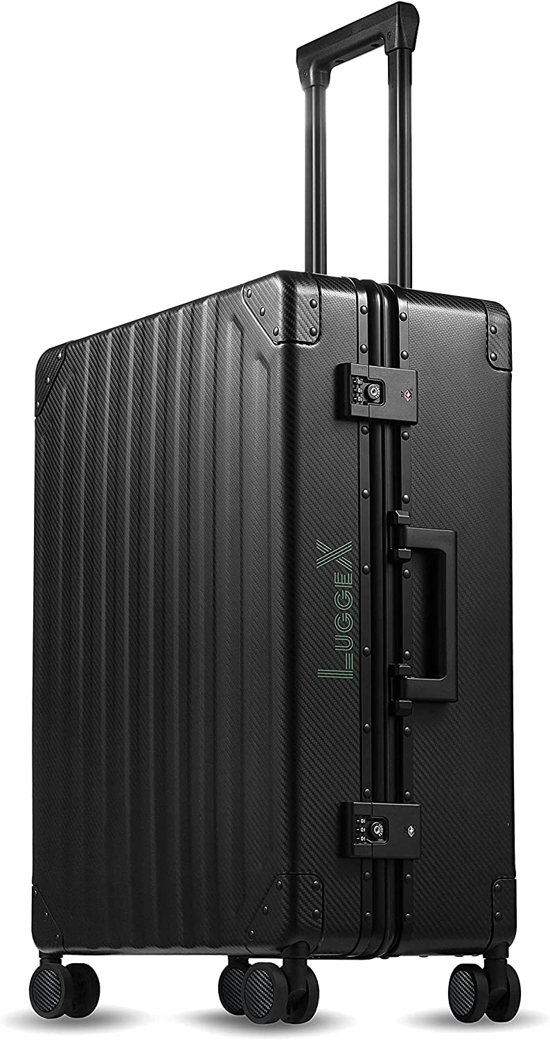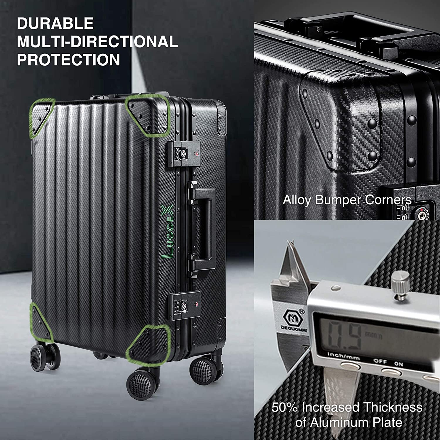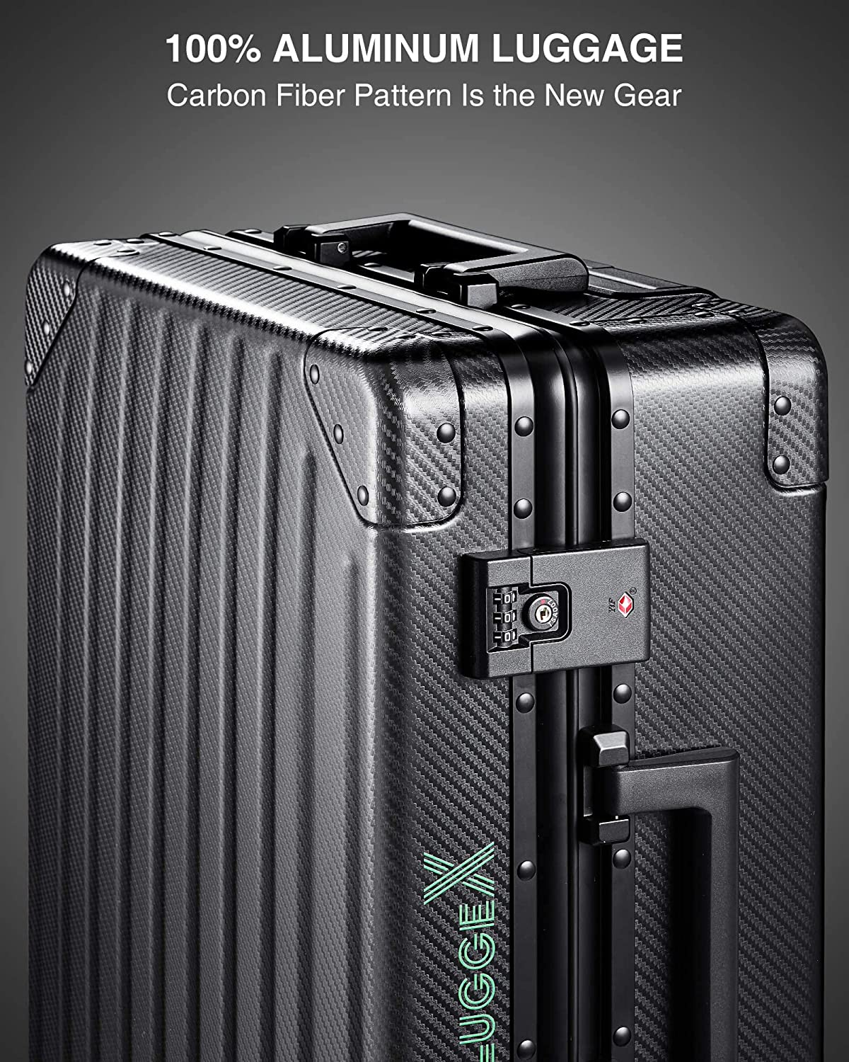 LUGGEX Aluminum Luggage Checked, 24 Inch No Zipper Luggage Metal Suitcase, Classy Carbon Fiber Pattern for Elegant Journey (Metal Suitcases with Wheels)