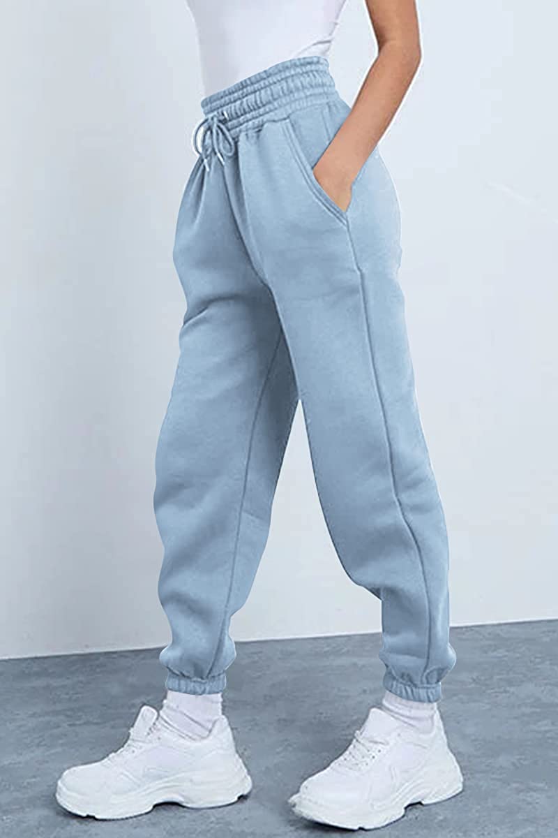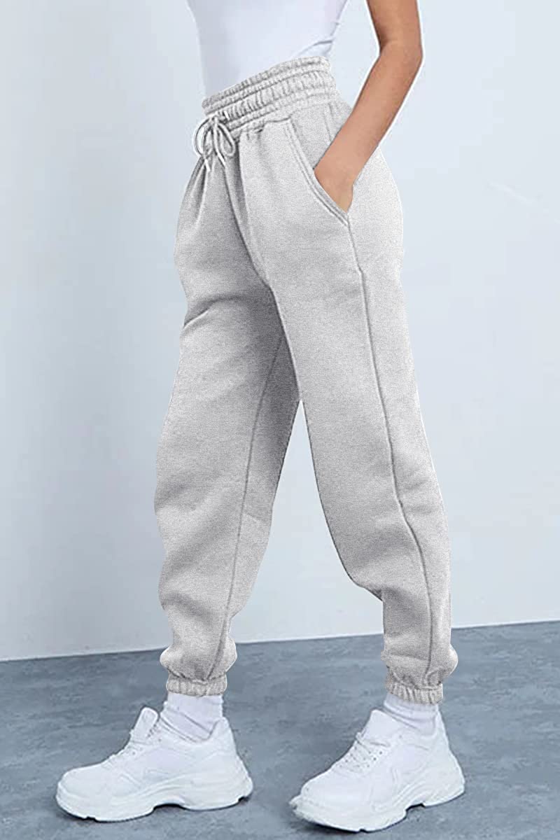 • Feature:Baggy comfy sweatpants for women designed with high waisted drawstring,perfectly shape the waist curve;Two side big pockets is very convenient to store your belongings (mobile phone, keys, wallet, etc.);Cinch cruff bottom easily fixed anywhere on the leg.Suitable for all age women(ladies,teen girls,juniors