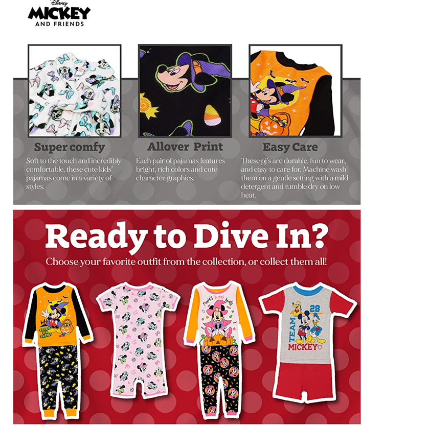 Disney Boys' Mickey Mouse 6-Piece Snug-Fit Cotton Pajamas Set