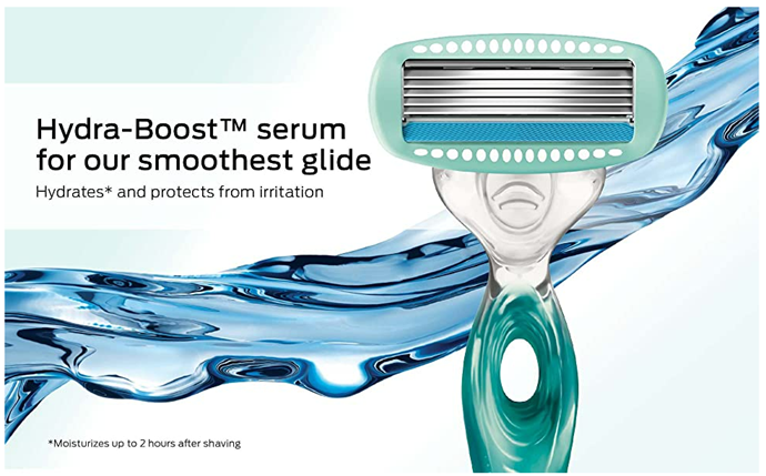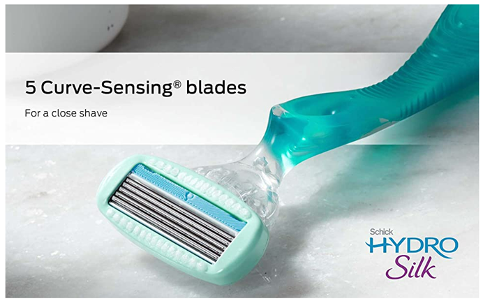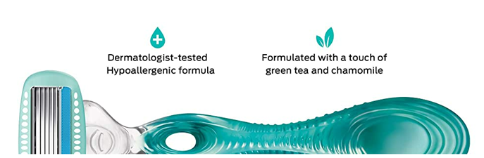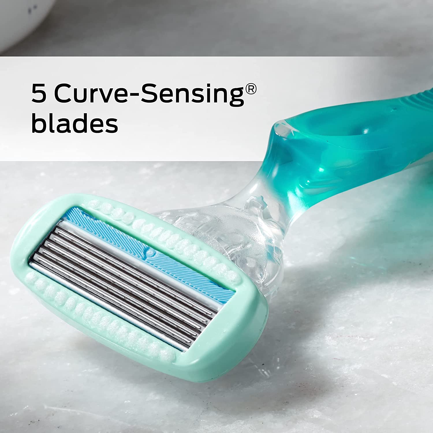 • Five curve sensing blades with unique skin guards to smooth skin throughout every stroke, helping to reduce irritation while providing ultimate closeness