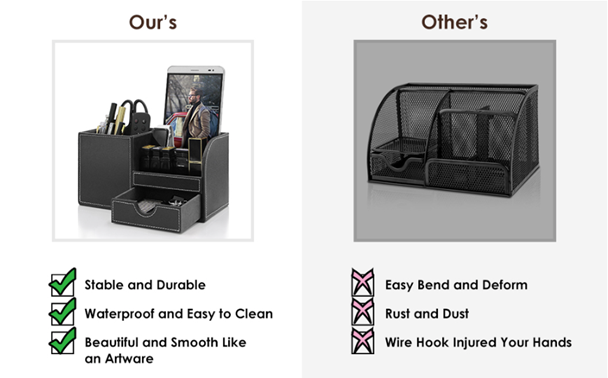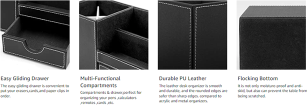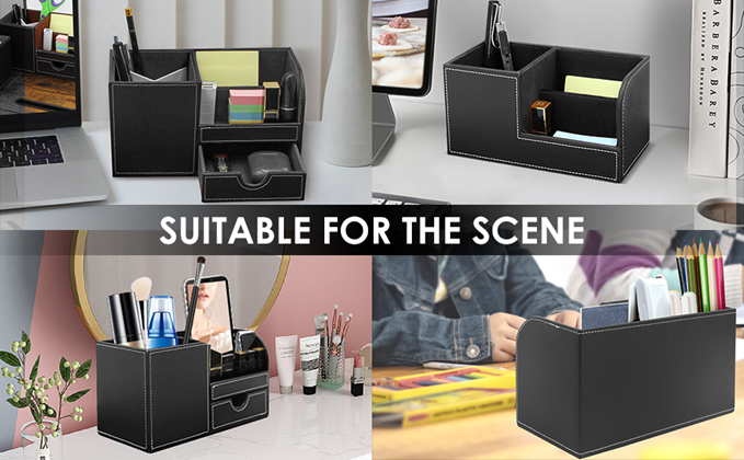 • Convenient: The pencil holder is divided into 4 parts, and the display area includes 1 drawer and 2 racks. So, you can organize your items neatly, and find them quickly.
