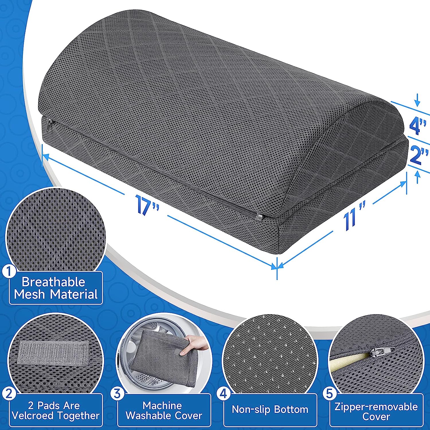 - Adjustable height of Foot Rest: The two-piece removable footrest can be used together for a total height of 6 inches or detached for individual use, and may be used to stretch your feet to any desired height. Each individual foot pillow has a non-slip ball underneath.