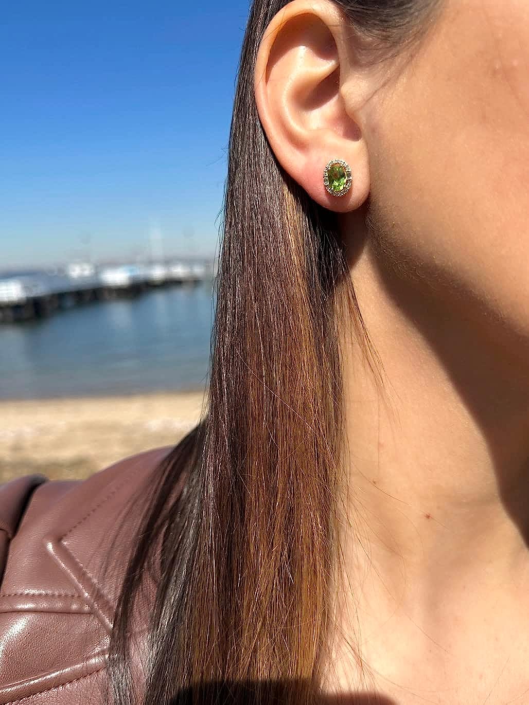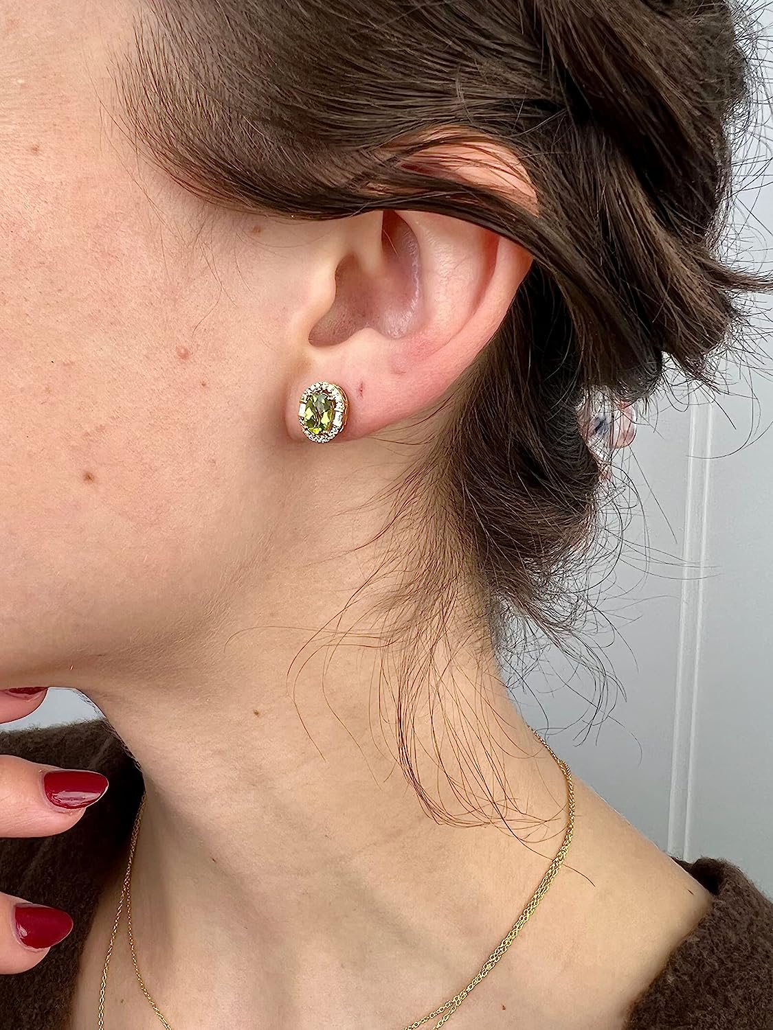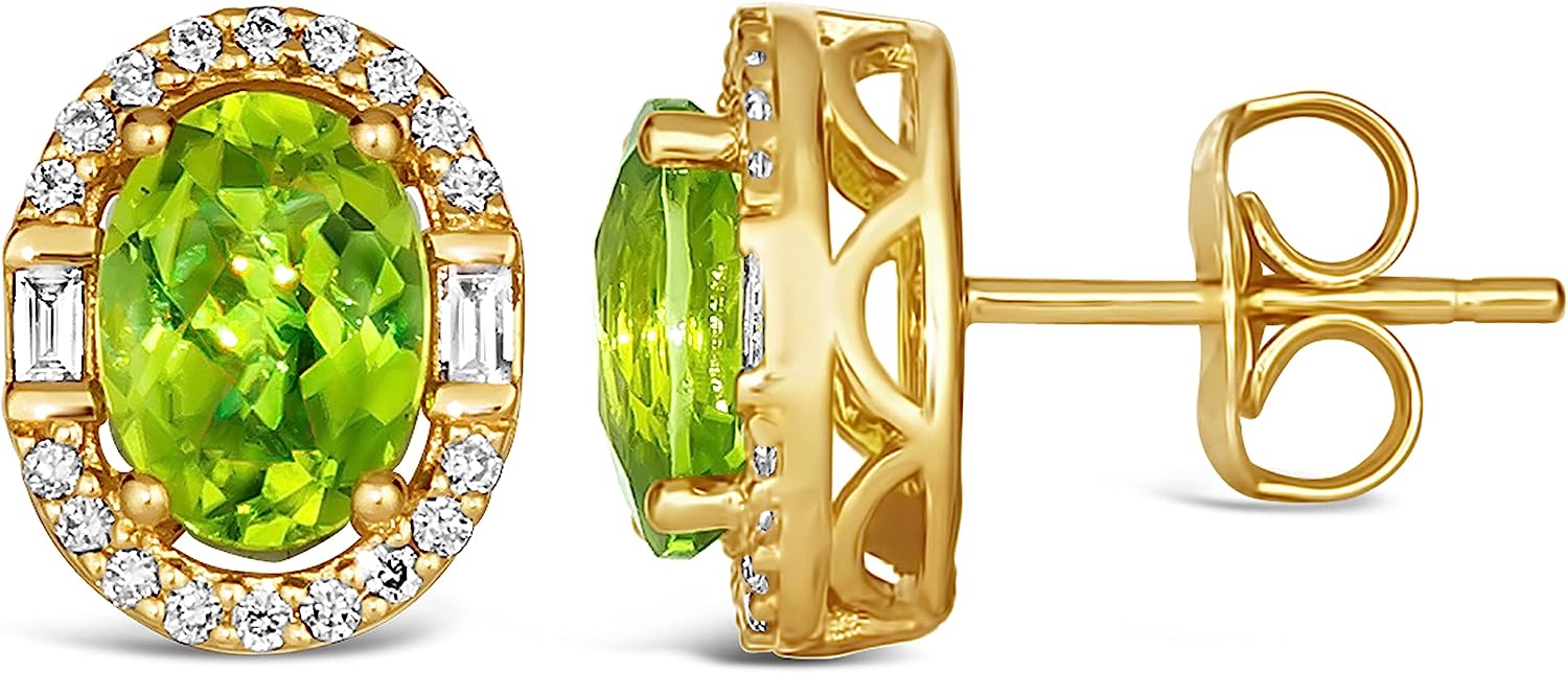 • UNMISTAKABLE ELEGANCE - These gorgeous 14k yellow gold stud earrings from Le Vian feature 1/5 carat diamond and 1 2/3 carat green peridot. These oval shaped stud earrings feature friction posts and butterfly backs for comfortable and secure wear all day long. These striking earrings are the subtle statement piece you’ve been looking for