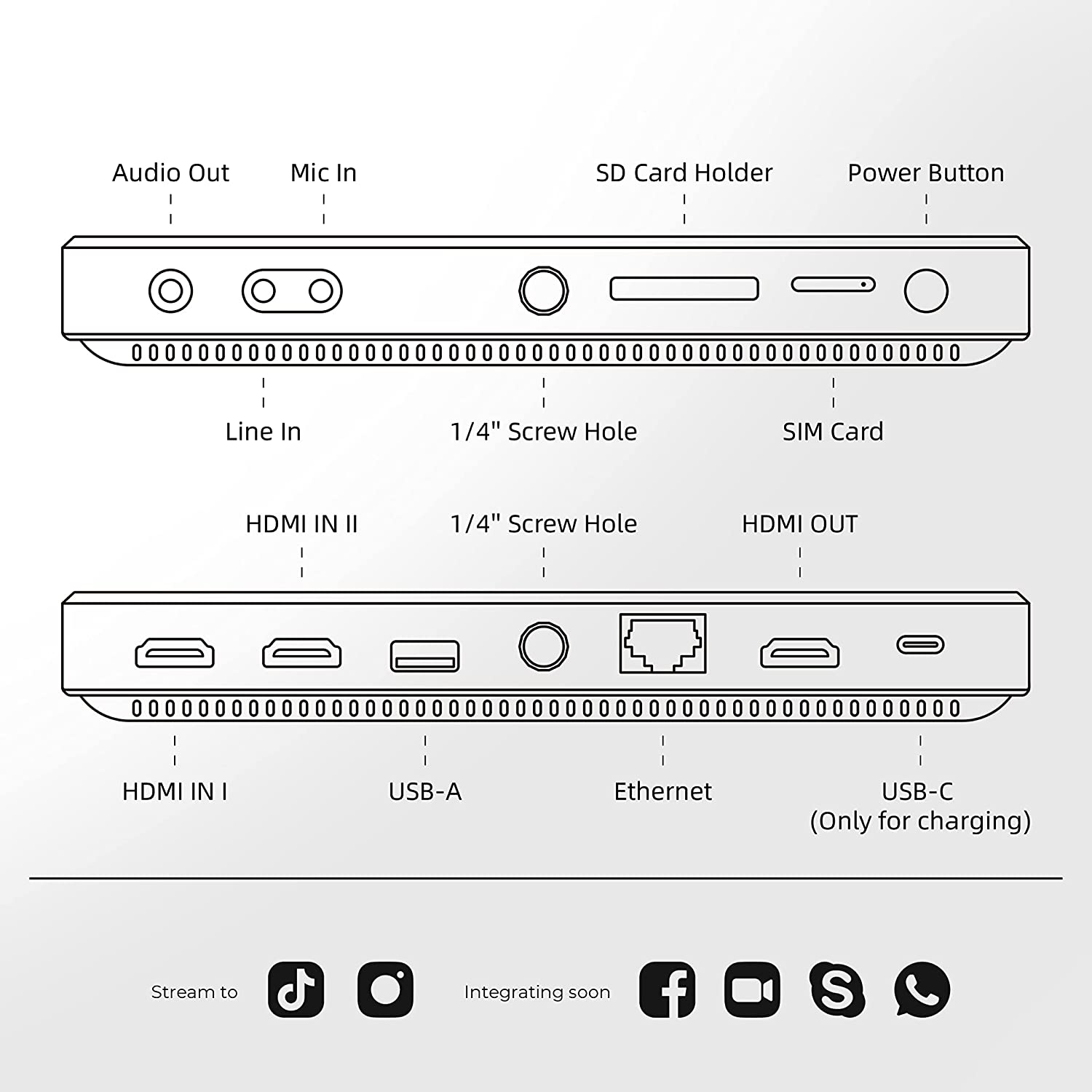 Wildly Advanced, Yet Brilliantly Simple: Instream has 2 HDMI inputs, 1 USB input, plus local SD card video sources and PDF source from SD card, 1 Mic in, 1 Line in, 1 HDMI out, 1 Audio out. It can live stream and switch with multiple sources. The 8-inch touch screen design is still super-easy to operate. It’s brighter with 600 nits and more responsive! With a much increased built-in 10,000mAh battery, it has over 3-hour battery life.