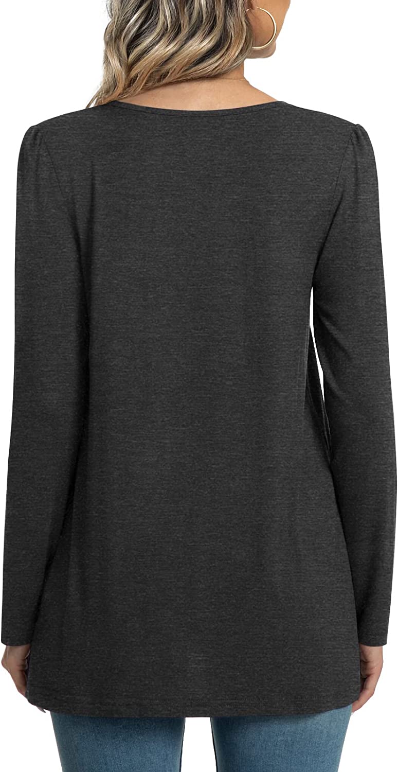 ❤【Features】 Crew neck, long sleeve, pleated on the front, easy to cover your belly and back area. Stretch, soft, loose, comfy, casual style. A variety of different solid and floral print are available for you to choose from.
