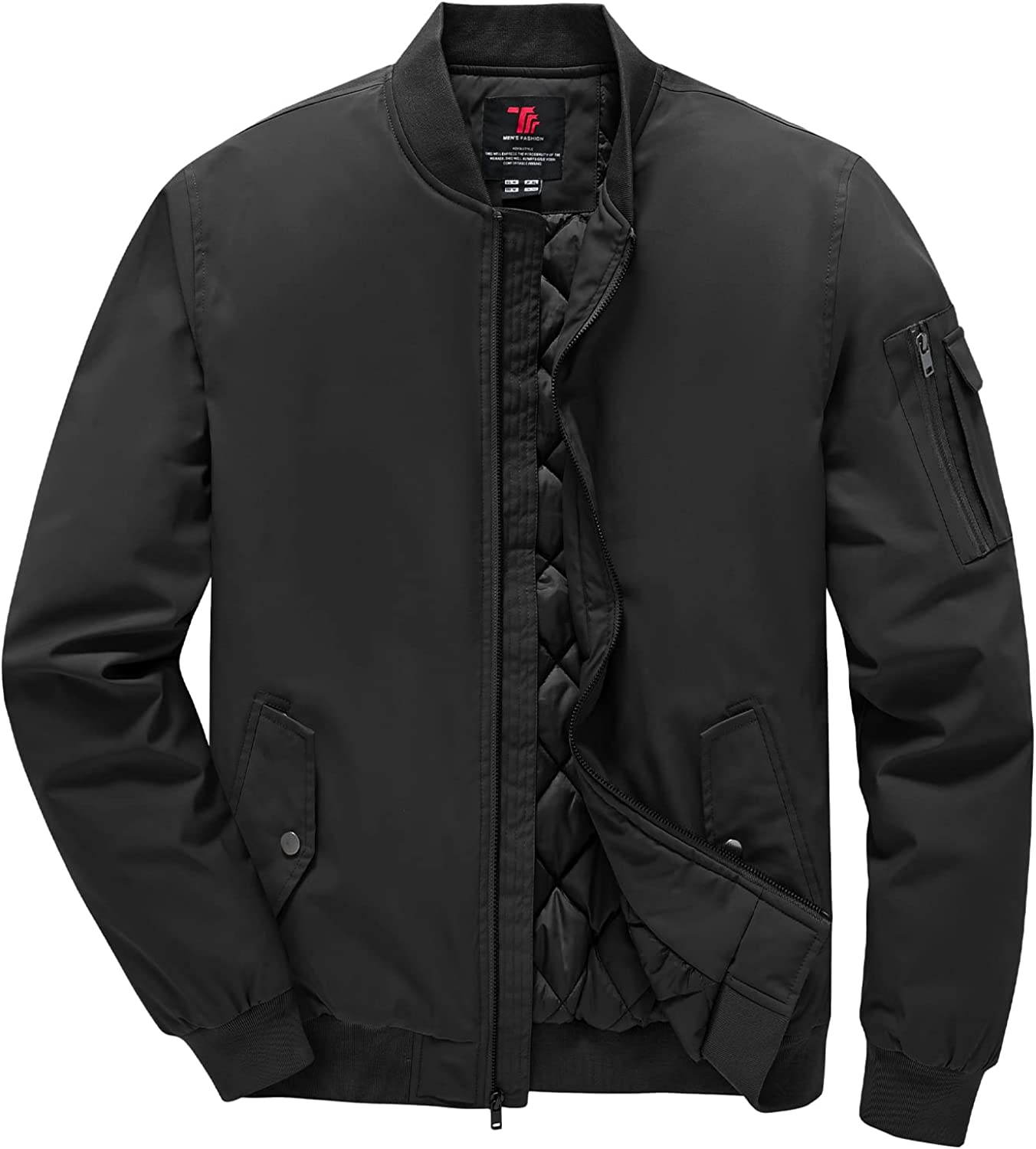 TBMPOY Men's Qulited Bomber Jackets Windproof Full Zip Padded Winter Casual Fashion Coat