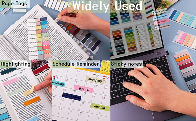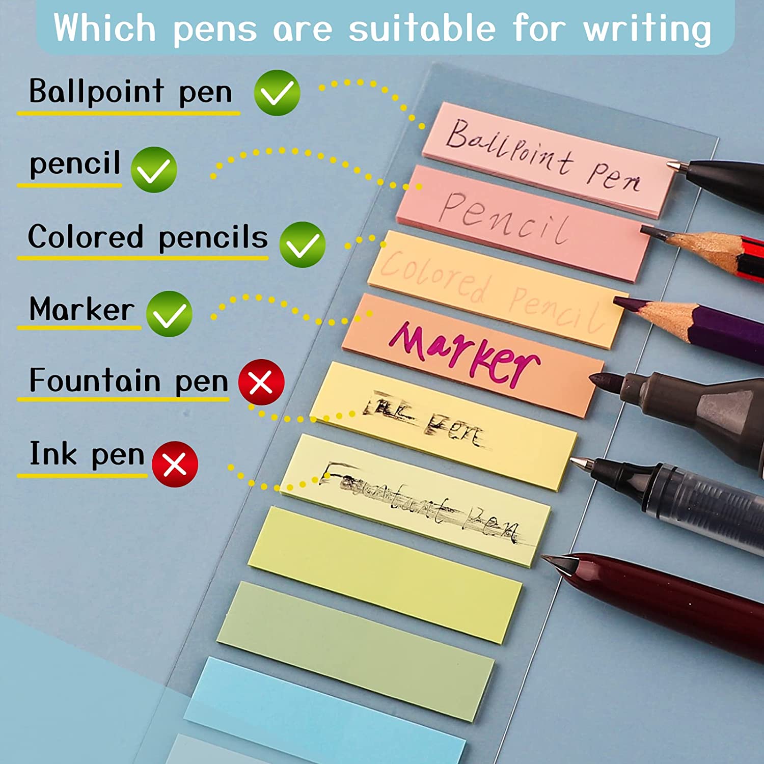 • Multipurpose labels: translucent book sticky tabs can help you plan, and organize work for office file filing, Can be used to annotate books or notes, highlight key points, save your time and increase efficiency, and make even tedious paperwork fun. They double as great bookmarks too! It is recommended to write with a ballpoint pen or pencil