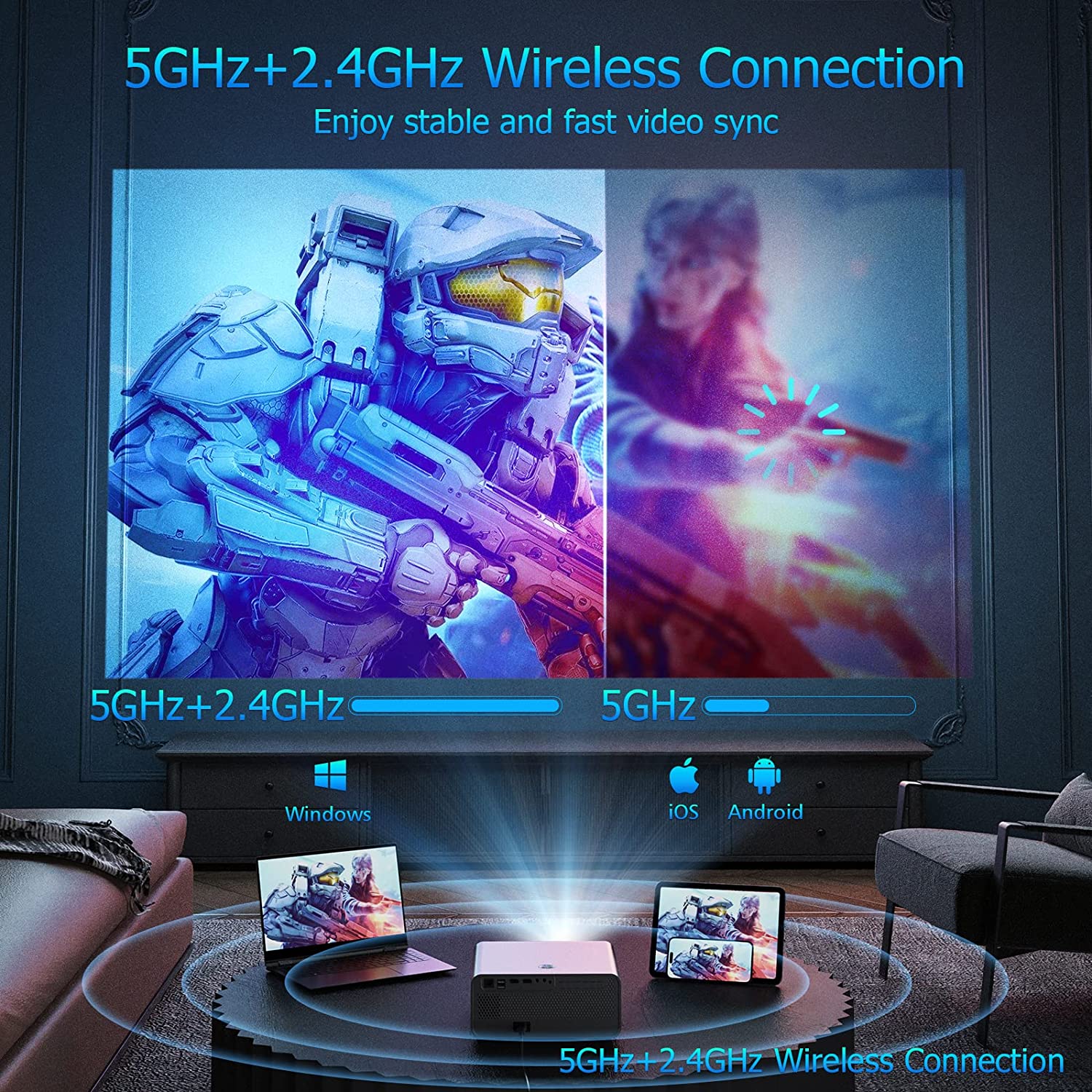 • Fast & Stable 2.4GHz/5GHz Connection: Ultrafast 5GHz WiFi guarantees no lagging while watching your favorite streaming videos on this wireless projector. (Due to the standard app copyright, watching Netflix, Prime Video, Hulu, etc. can only work if connected via HDMI, fire tv stick, Roku, or Chromecast).