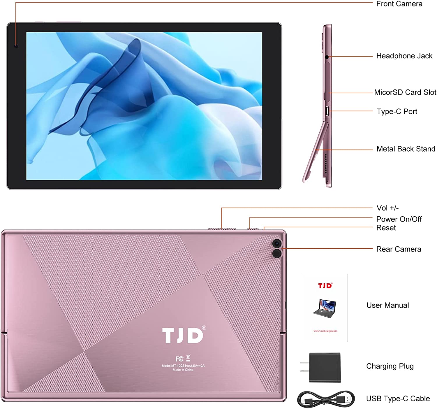 • Patented Stand Design - TJD Tablet android has a unique patented metal back stand design, in case you video, writing, cooking stand at will, Better increase the use experience. Tempered film is installed on the tablet. Its with built in 2.4G/5G WiFi6, Bluetooth 5.0, Google Play is preinstalled, Enjoy your favorite apps like Netflix, Twitter, Instagram, Tiktok, etc. as much as you want.