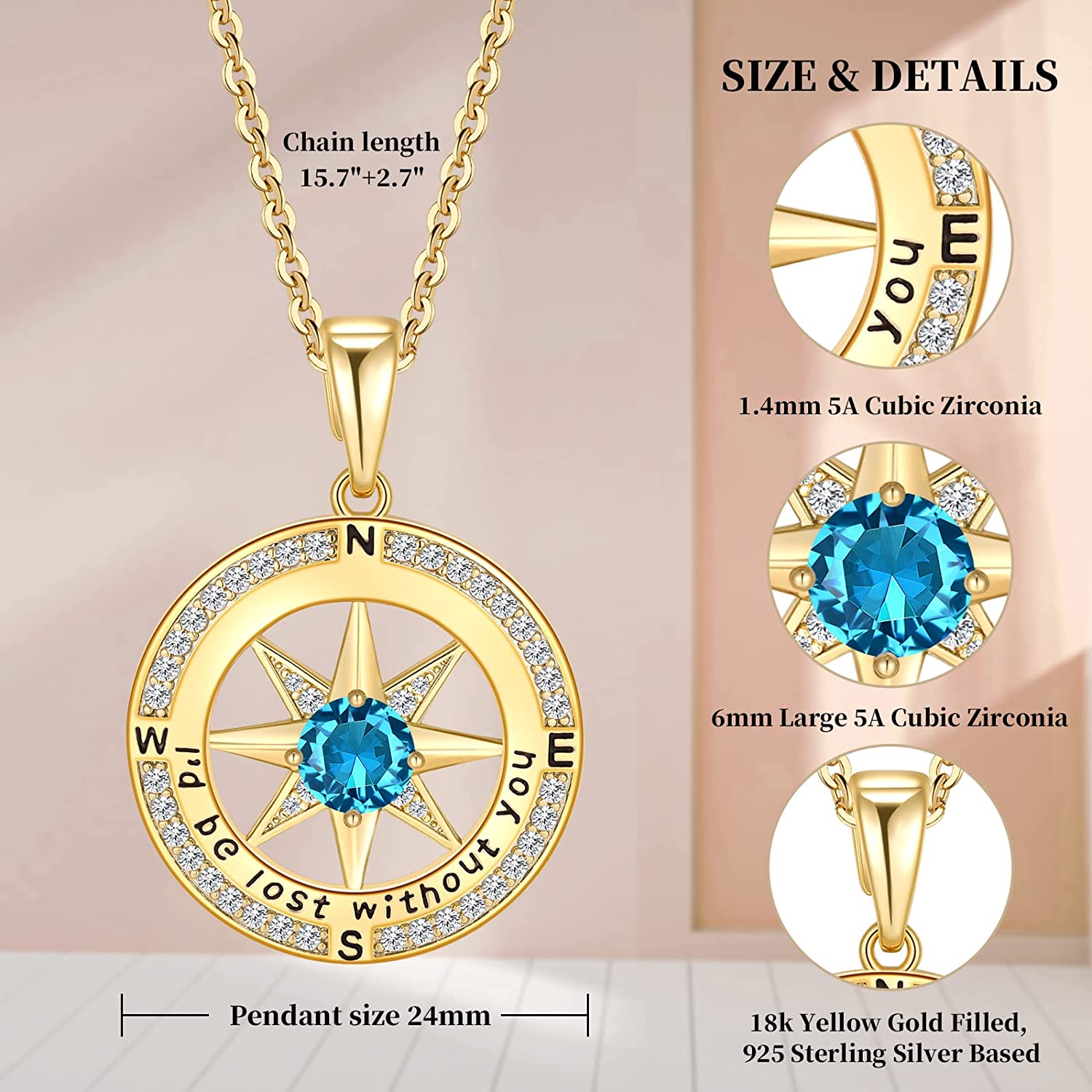 • 【Unique Meaning】Compass necklace for women, “I'd Be Lost Without You ”, makes it the best gift to express sincere love. The anniversary gifts show me your direction, which represents the lucky charm of love. Give this anniversary gift to your beloved to show her importance in your life.