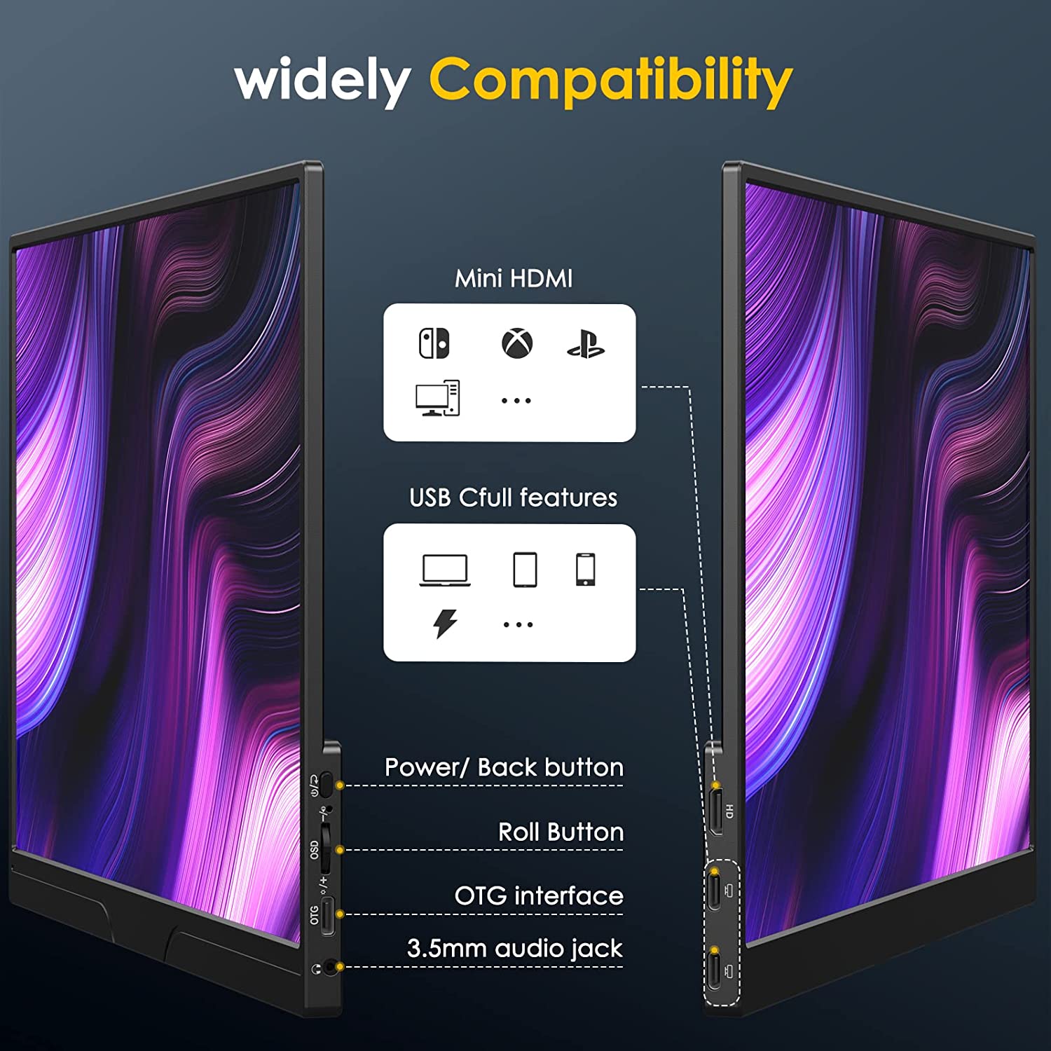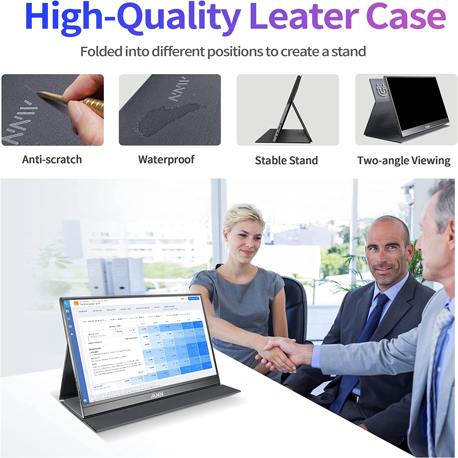 • Powerful Smart Cover - MNN portable external monitor can work in both landscape and portrait mode, can be used as a gaming monitor, screen extender for laptop or phone. Comes with a scratch-proof smart cover made of durable PU leather exterior, doubles as a stand, provides comprehensive protection for this portable computer monitor.