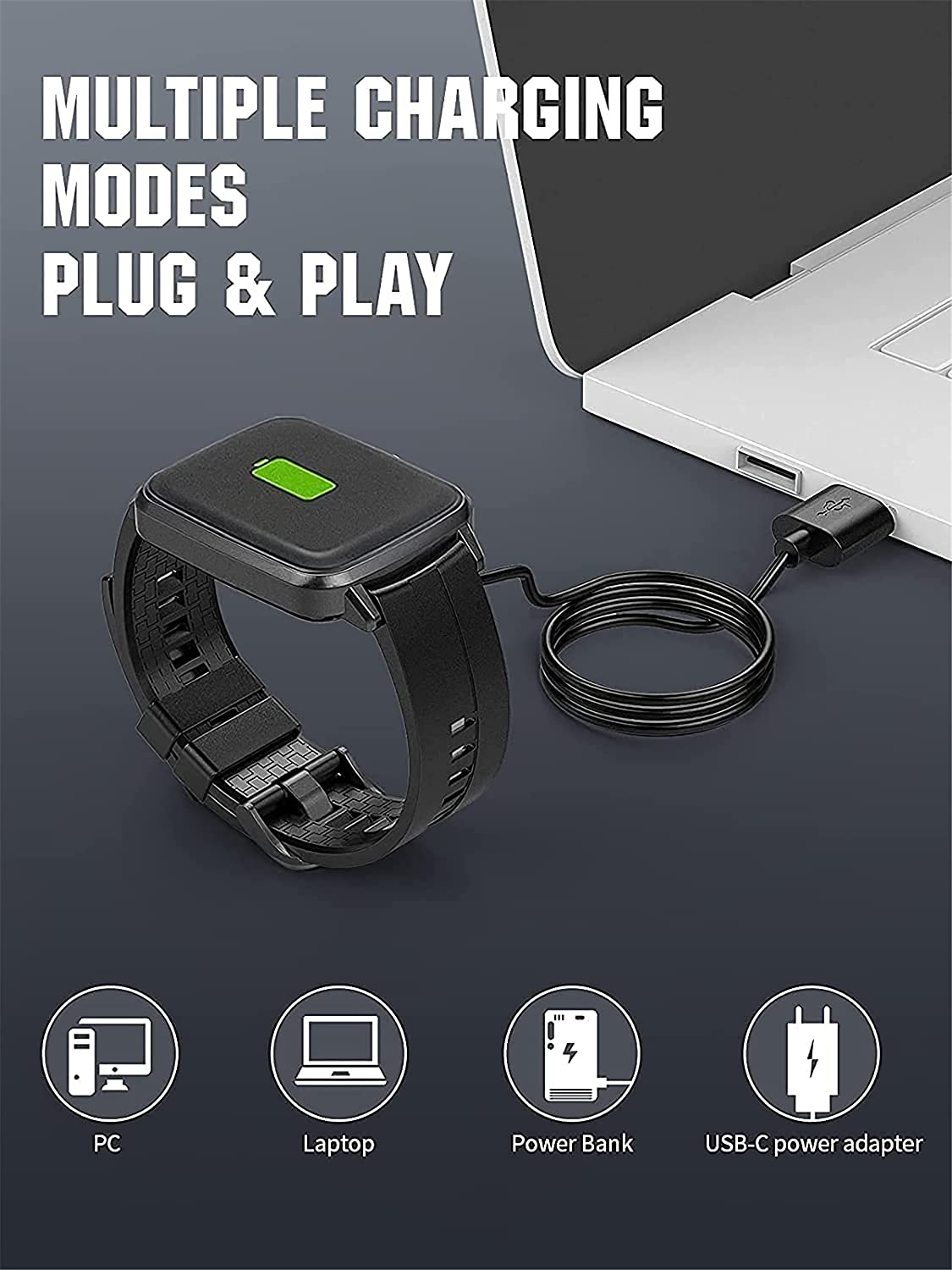 Package Contents : 1pack 2 feet/60 cm smart watch charging cables.The watch charger has a wide range of compatibility. You can use the USB port of a PC, laptop or adapter to quickly and safely charge your smart watch.(Note: Please make sure the model of the watch is correct before placing an order to avoid wrong buying.)