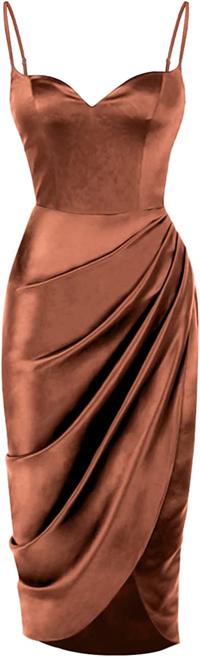 Chic Design - Spaghetti strap / Low cut / Padded bust / High waist / Ruched and wrap / Side split / Hidden back zipper / Midi / Slim fit. Joukavor sleeveless slit bodycon dress will hug your figure perfectly and create a seductive silhouette.