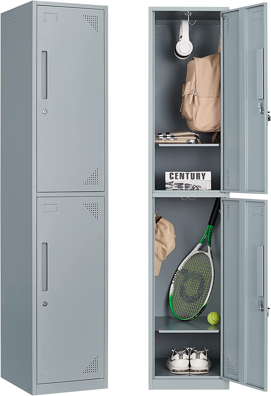 【Big capacity】Letaya metal lockers H71" x W15" x D17",2 door with lockable and 25.3 inches hight can hang clothes, hats, bags, etc.,17in deep can provide all the space needed to secure belongings for storage.