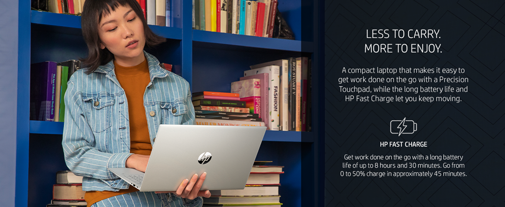 • WORK ON THE GO – Get work done on the go with a long battery life of up to 8 hours (5) while HP Fast Charge lets you go from 0 to 50% charge in approximately 45 minutes (6)