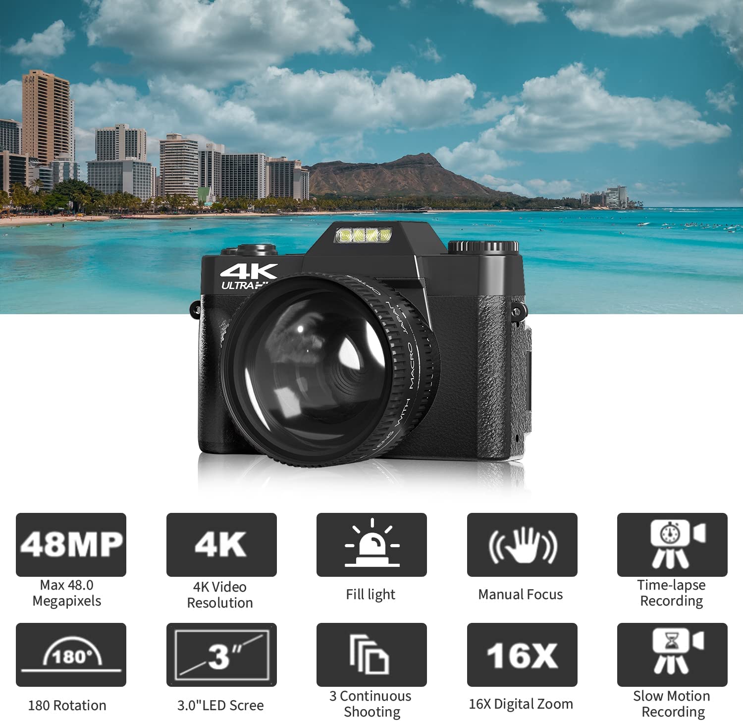 Special Features‎‎Slow motion, time lapse, photography, wifi camera, travel photography, beginner camera, 4k camera, digital camera, digital camera for filming