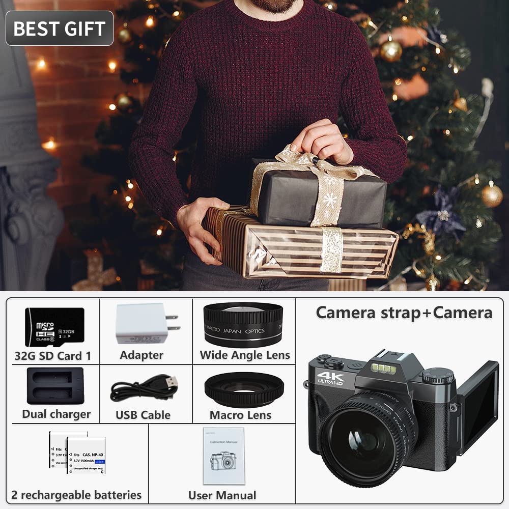 • ?【Camera for Photoggraphy and Video】The digital camera featuring 4K video and 48MP photo resolution, the vlogging camera supports 16X Digital Zoom, Video Pause, Recording while Charging, Loop Recording, Continuous Shooting, Silent Recording, Self-Timer. with the latest upgraded chip to ensure the camcorder images more high-definition, more realistic. It’s the best gift for friends and family.