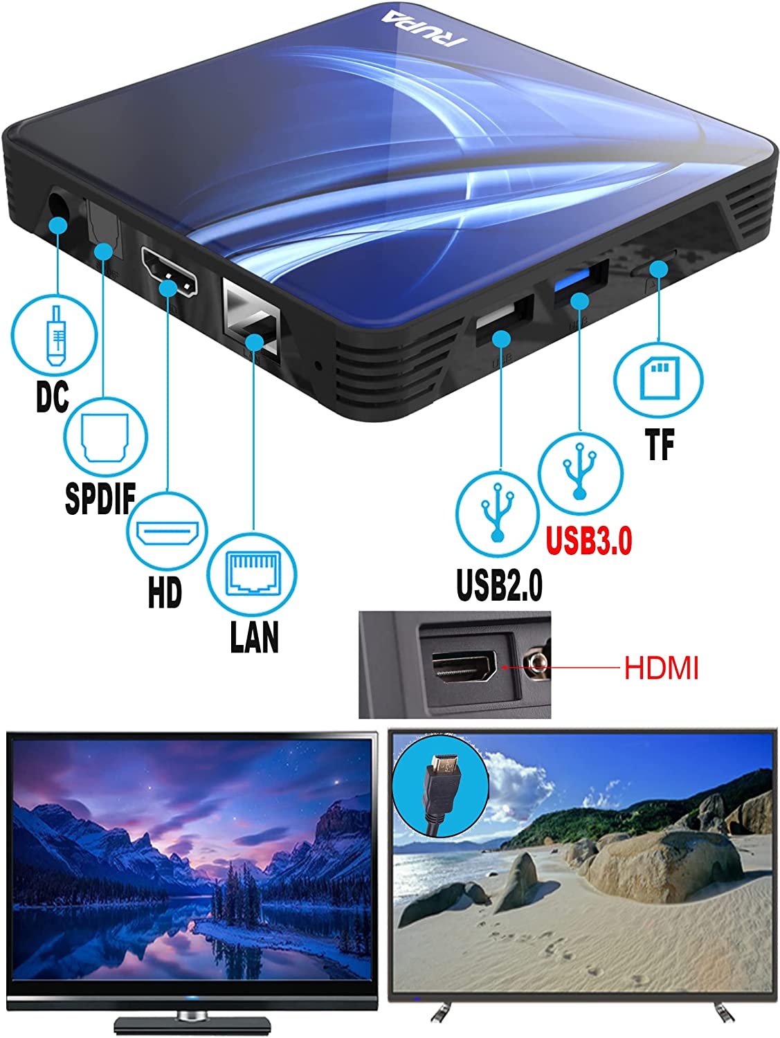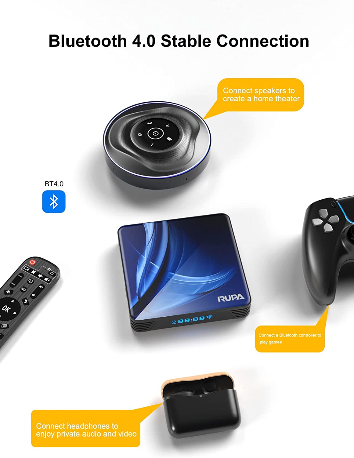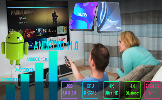 - ✅【Android 11.0 & RK3318】RUPA TV Box is equipped with Android 11.0 system, adding some optimizations and bug fixes to protect your privacy and data security. Equipped with a powerful RK3318 quad-core 64-bit CPU to keep the video running stably and smoothly. Don't worry about freezing and buffering and have a cinematic experience.