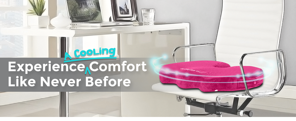 • Cooling gel memory foam seat cushion: This coccyx cushion is made from high-quality memory foam to offer comfort and to help relieve back pain, tailbone pain, and sciatica. Layered over the memory foam is a padding of cooling gel meant to keep users cool and comfortable throughout the day. This cushion is ideal for office chairs, wheelchairs, airplanes, or for use in a car. Great for short and long trips.