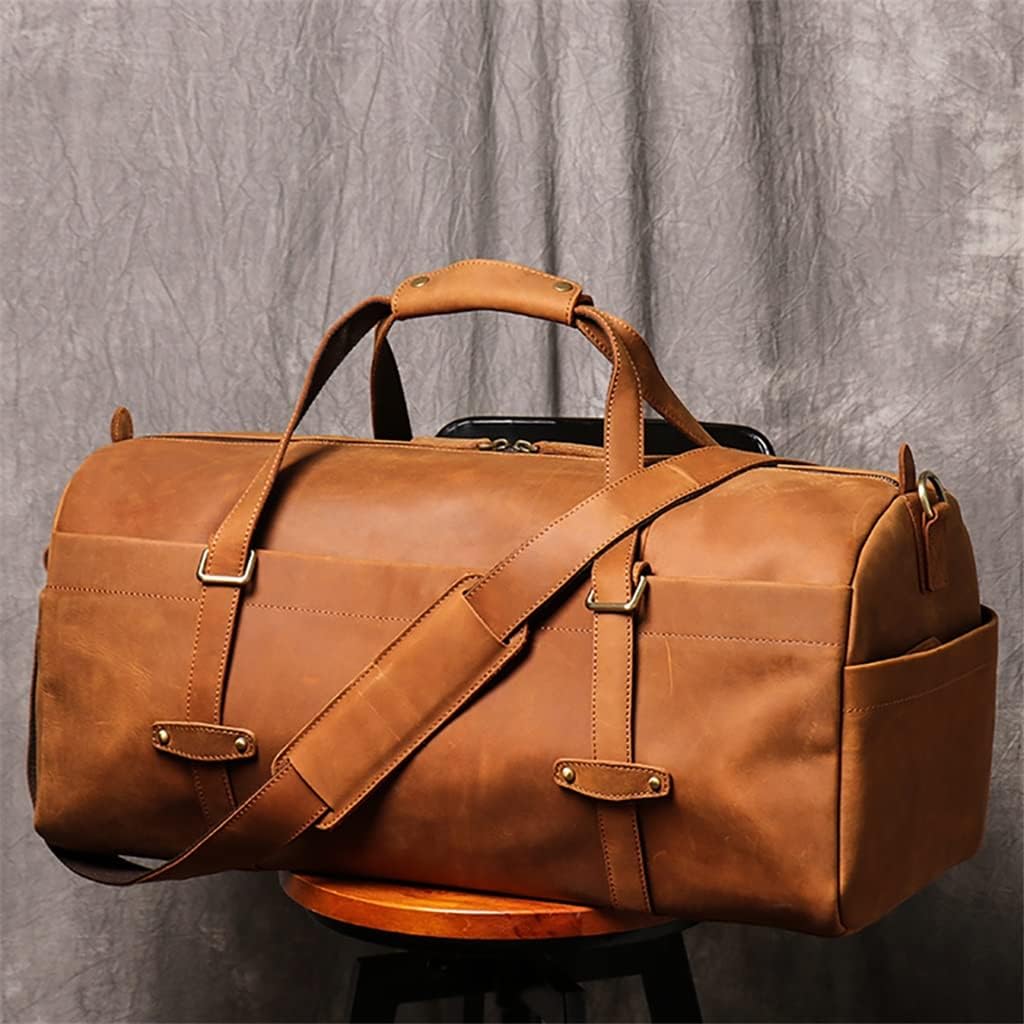 Walnut Men Leather Travel Bags Carry on Luggage Bag Men Duffel Bags Handbag Casual Traveling (Color : A, Size : One Size)