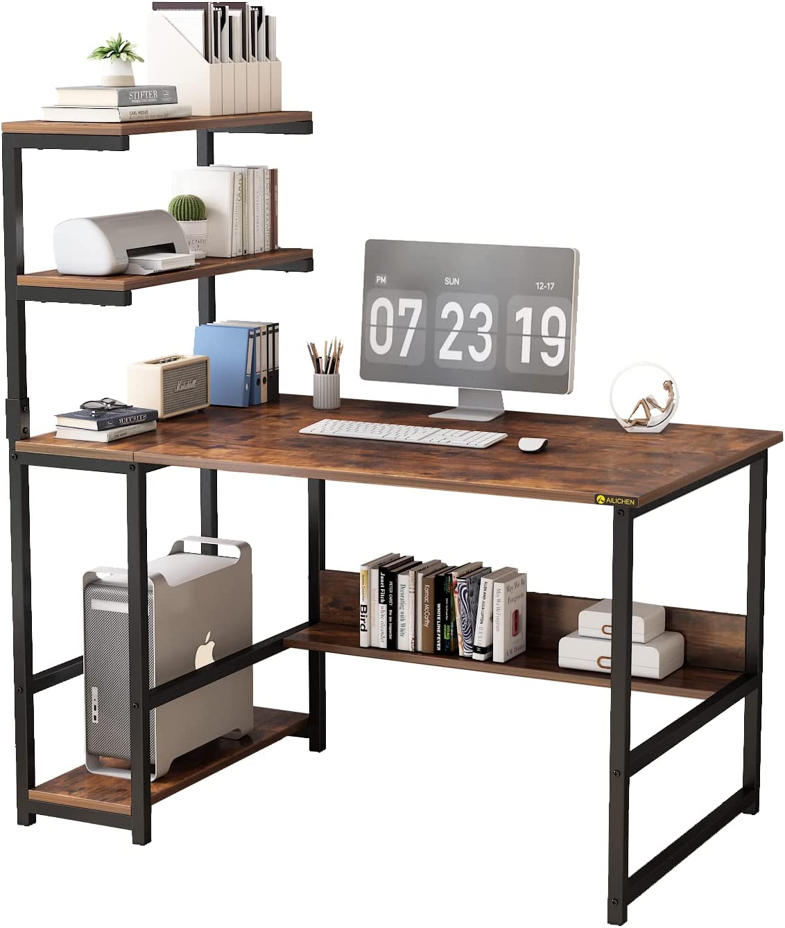 ALISENED Computer Desk with 4-Tier Storage Shelves, 43.3 inch Modern Large Office Desk Computer Table Studying Writing Desk Workstation with Bookshelf and Tower Shelf for Home Office