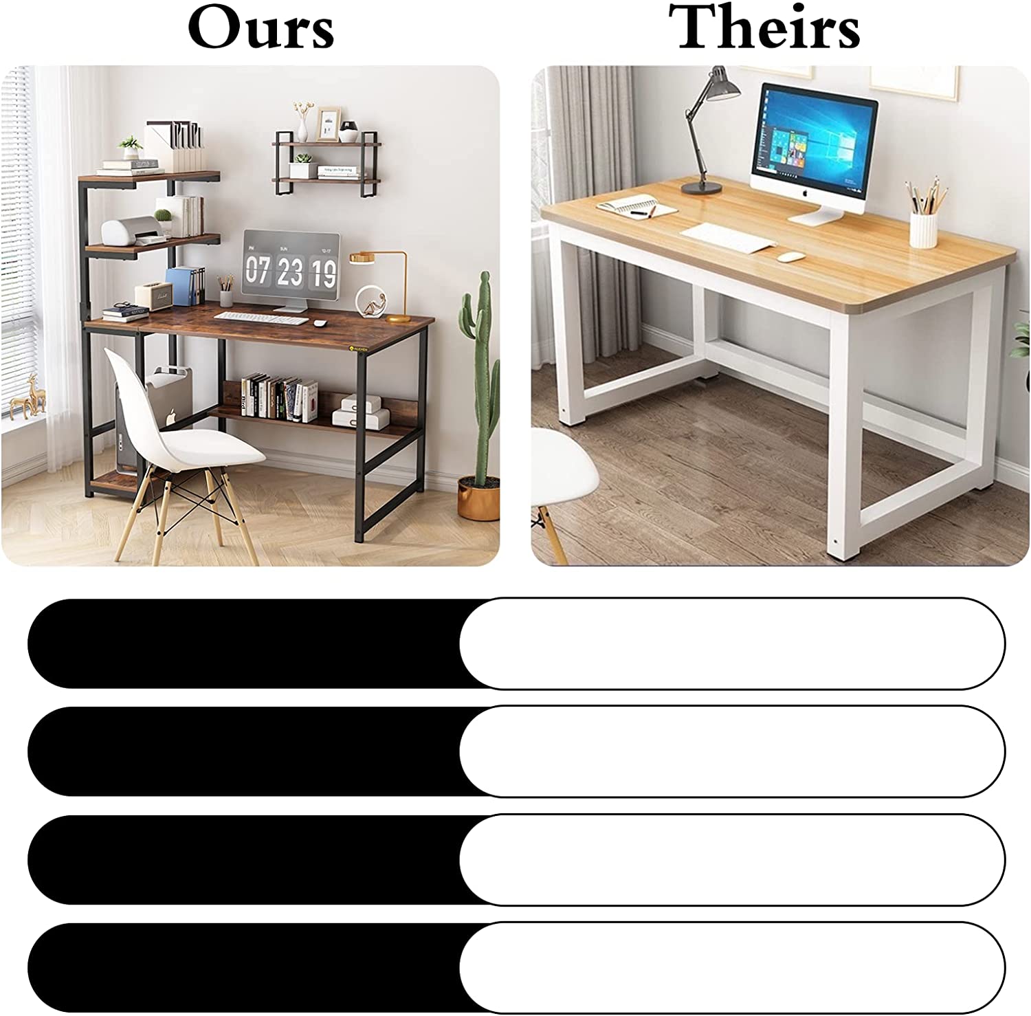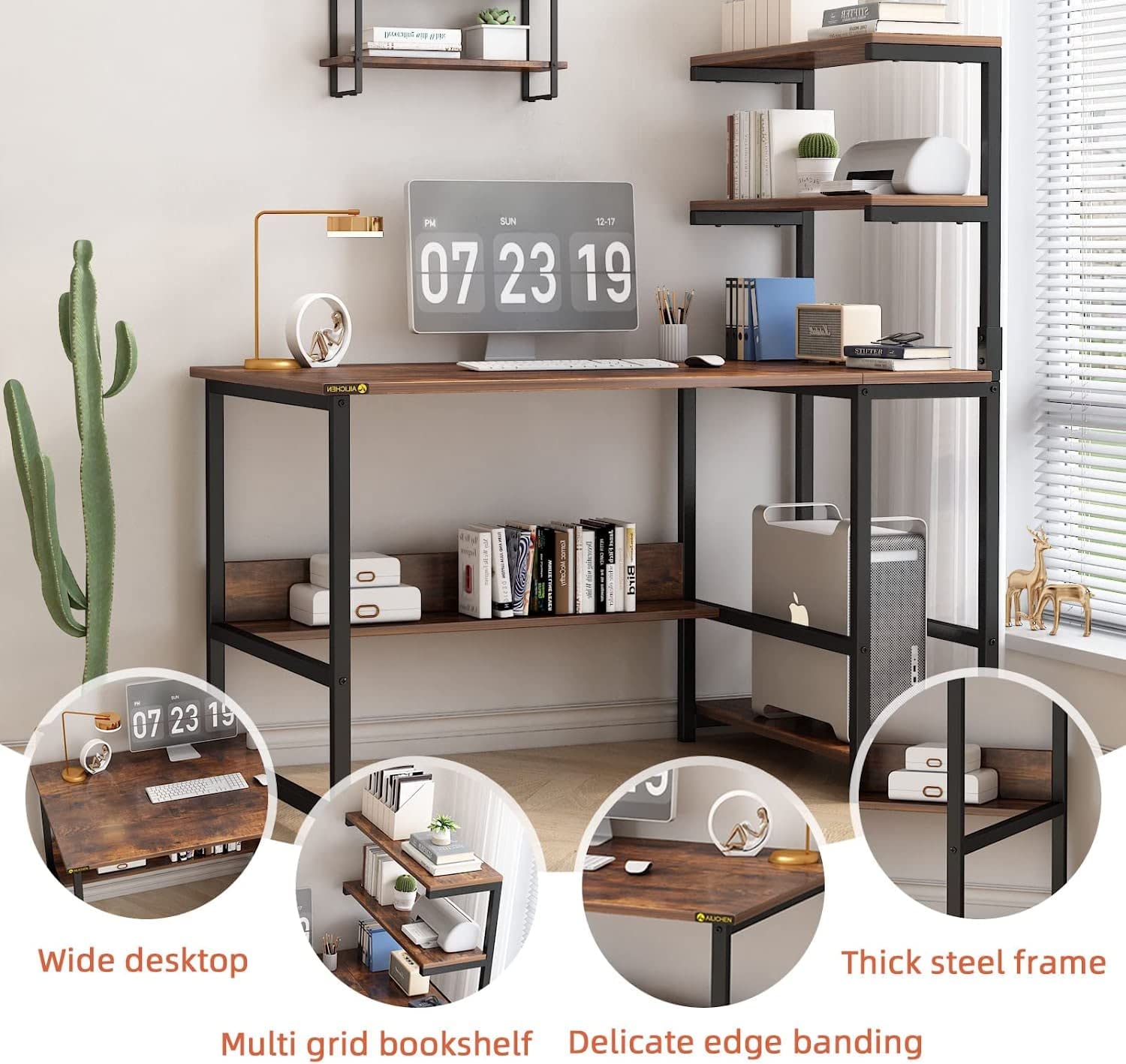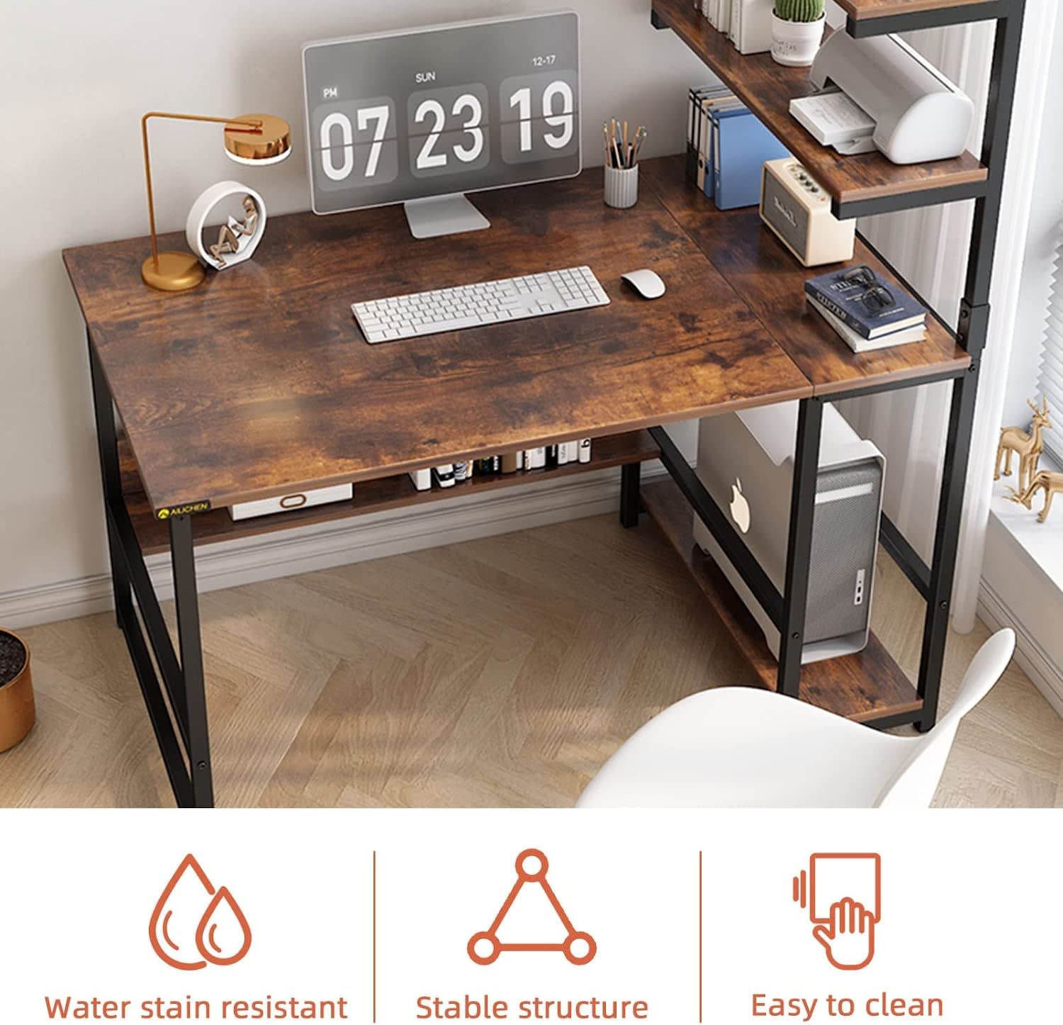 • Organize your Workspace: Features with 2-Tier storage shelves on the left and one open bookshelf under the desktop, there are plenty of storage space for files, books, office supplies, easy to keep essentials within arm's reach. The bottom shelf on the left is large enough to hold your computer host.