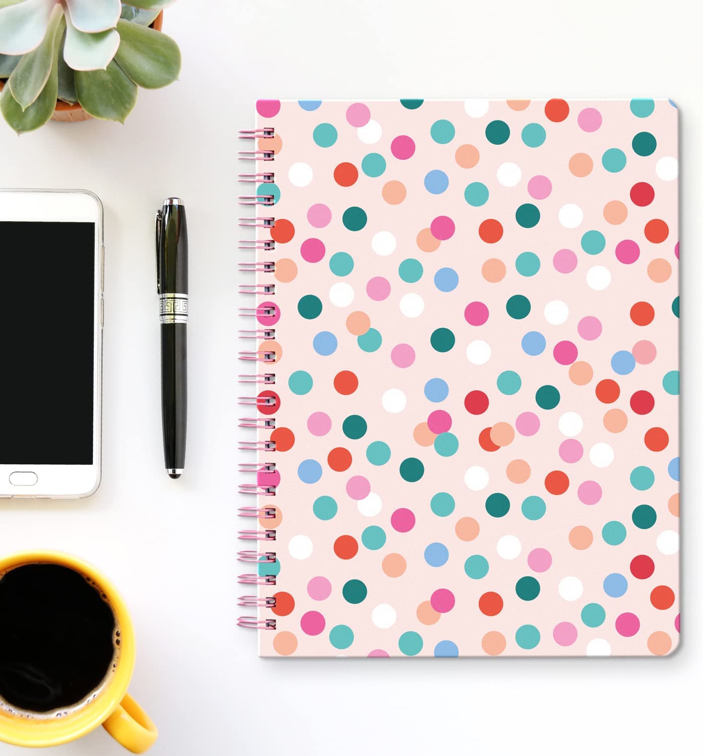 S&O Cute Spiral Notebooks - College Ruled Spiral Notebook with Pockets - Hardcover Notebook for Women - 160 Pages - Cute Notebooks for School & Journal - Polka Dots Notebook - 6.25x8.25"