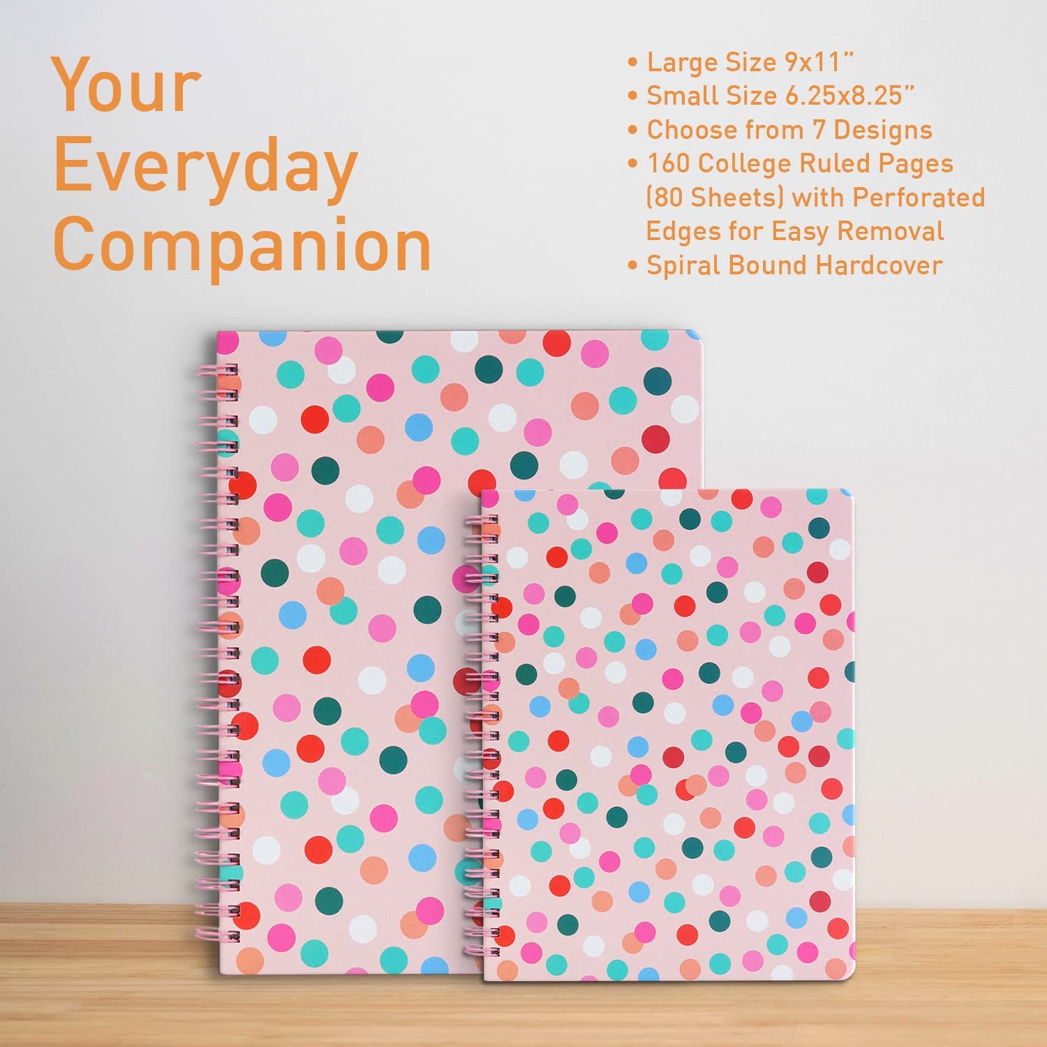 • Stationery with Style — A cute notebook makes a statement in daily life. Choose from 7 eye-catching designs in 2 sizes. A beautiful cover transforms your small spiral notebook into a personal lifestyle journal and inspires you to write more