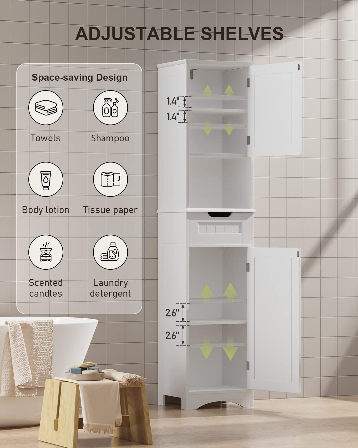 Gizoon 67" H Bathroom Storage Cabinet Organizer w/ 2 Doors & 1 Drawer, Tall Slim Freestanding Linen Tower w/Adjustable Shelves for Home, Versatile, Anti-Tipping
