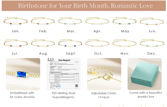 • ?Suitable for Anyone: With the stylish design, the birthstone bracelet is the perfect modification for any style of clothing. And it is a simple piece that will complement any look on any occasion, for everyday, dating, work, or formal occasions.