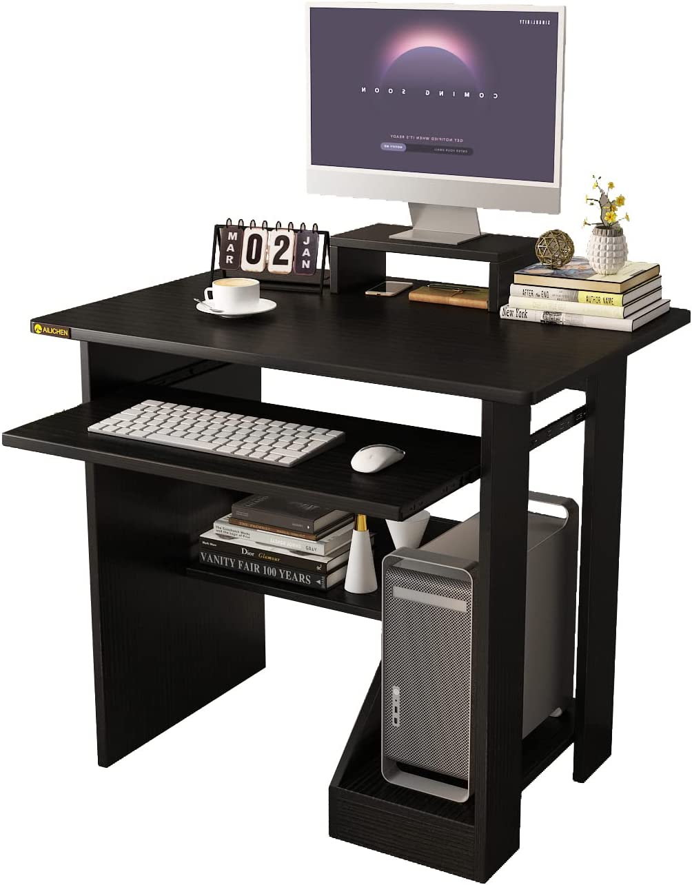 ALISENED Home Office Computer Desk with Monitor Stand Keyboard Tray, 29.5 Inch Study Writing Desk Small PC Laptop Table with Storage Shelves, Modern Workstation for Small Spaces Save Space