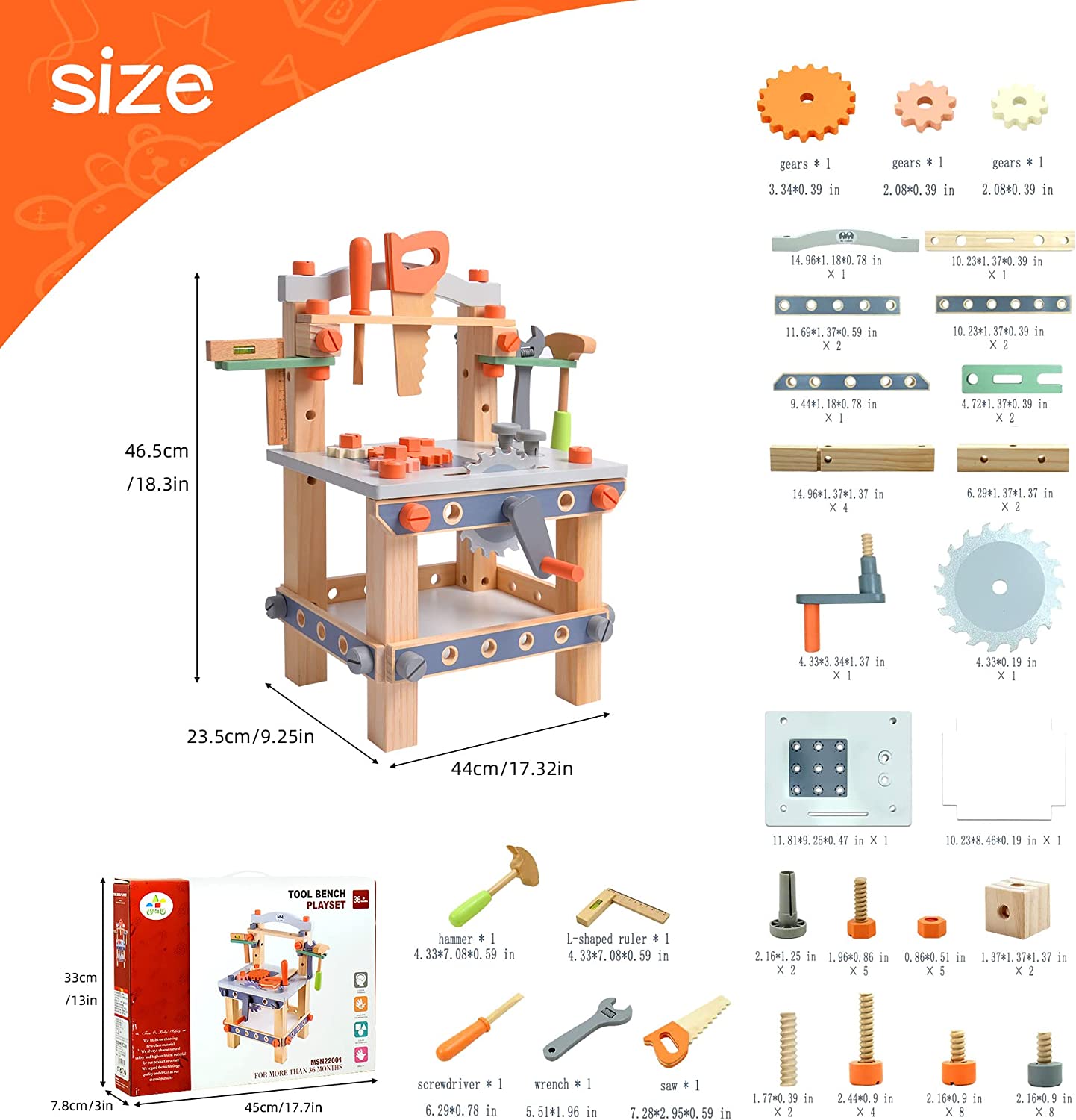 ⭐[Material and Quality]- Made of solid wood. Grinding irregular edges and corners, ensure no edges and corners and burrs, protect children's skin, let children play at ease, adults are also more at ease. kids tool bench.
