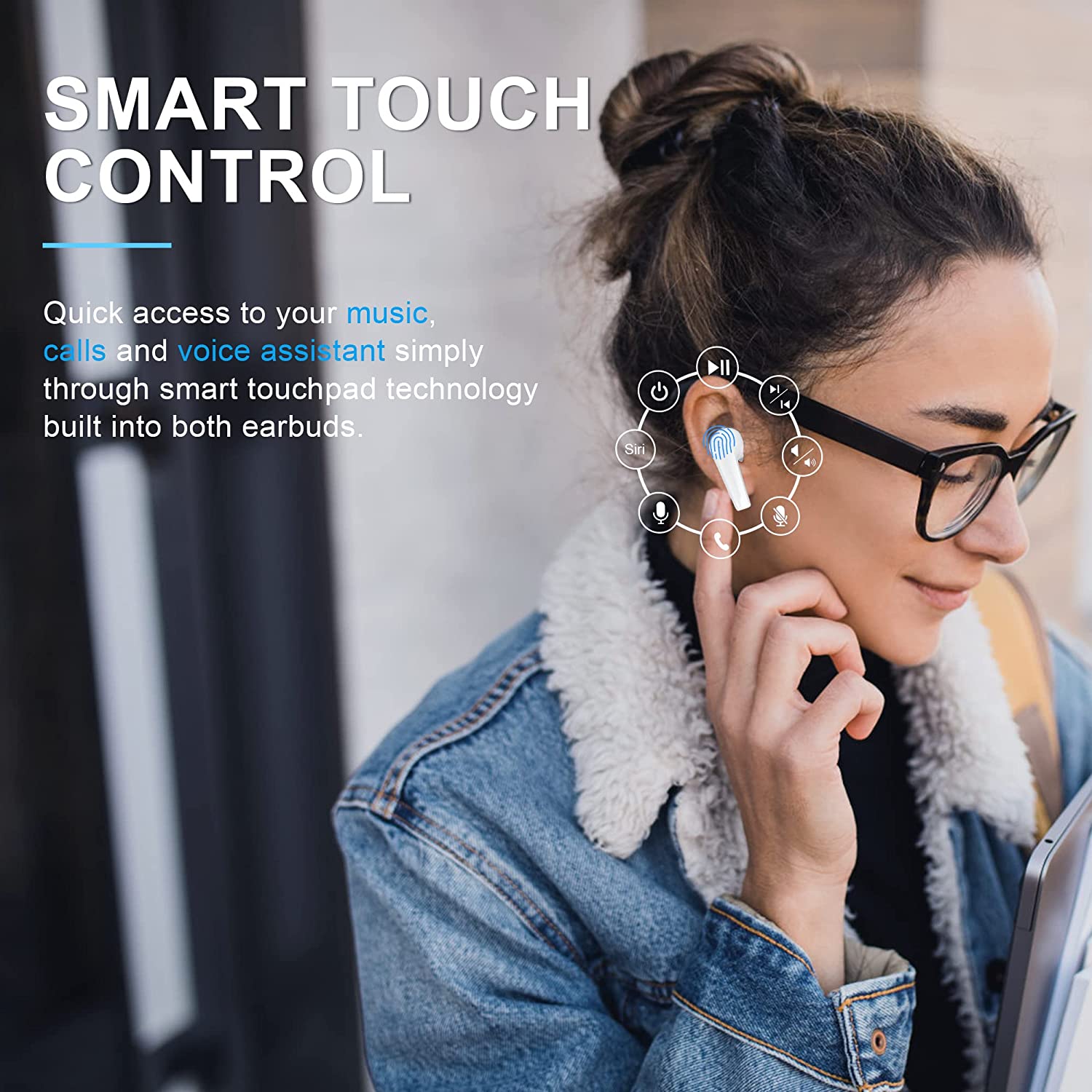 layajia Wireless Earbuds, Wireless Headphone Noise Cancelling with Bluetooth 5.1, Touch Control, 20H Playtime, IPX7 in-Ear Earphones for iPhone Android