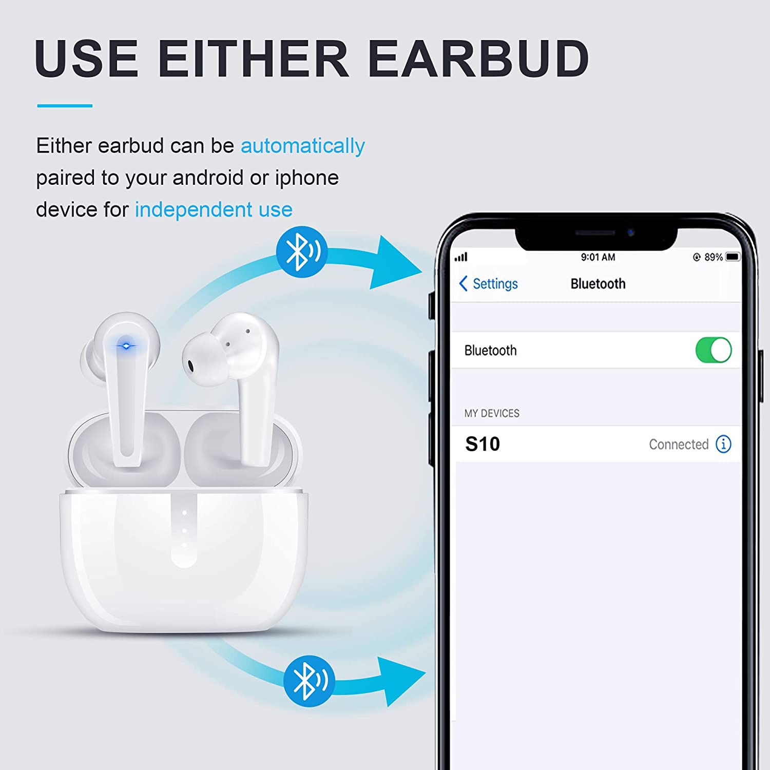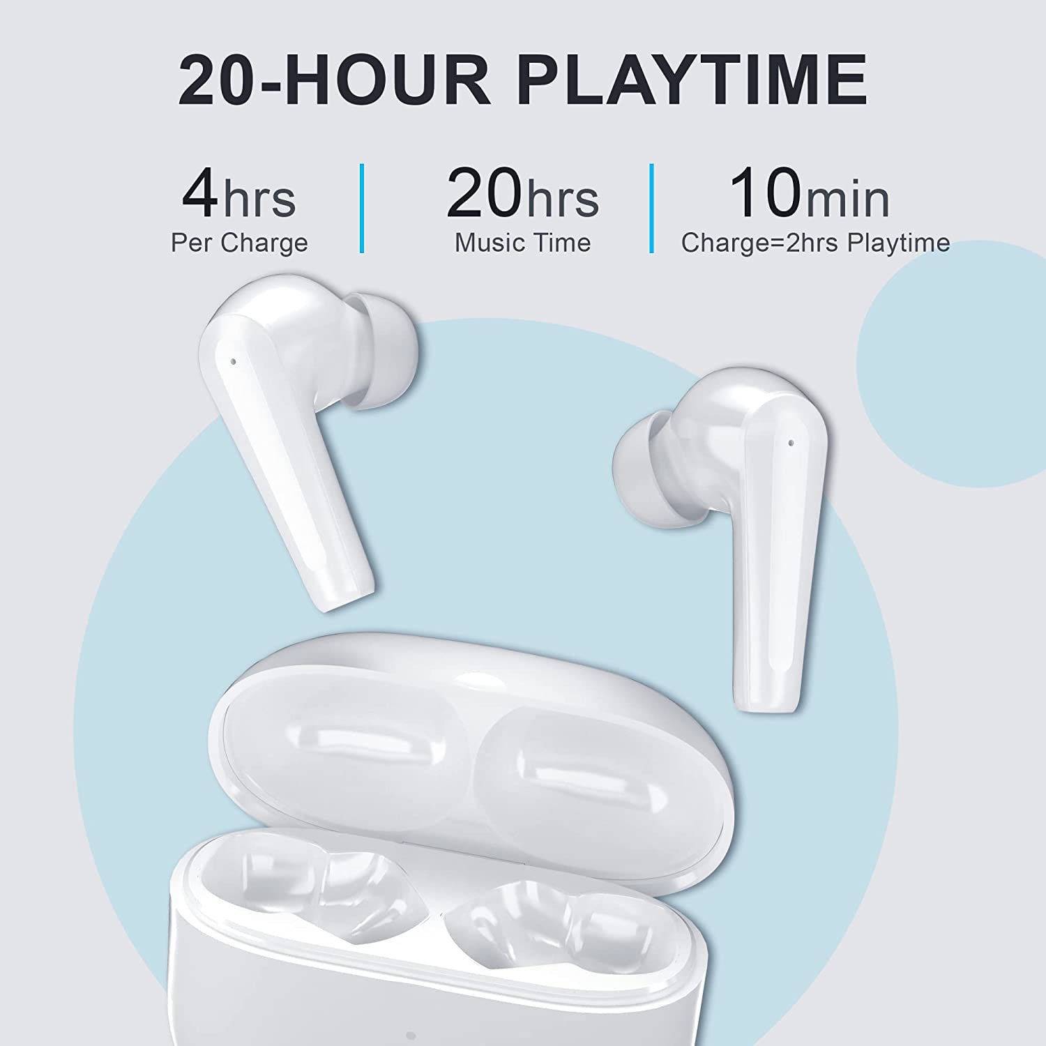 • ♫【20 hours of battery life】: A single earphone could be used for 3.5 hours, and the charging box could provide 20 hours of battery life for the earphones. Could provide you with music all day long. USB C charging gives 2 hours of playback in just 10 minutes. It only takes 90 minutes to charge the charging case from 1% to 100%.