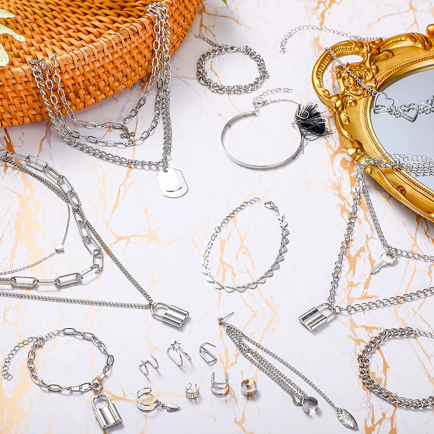 • Extensive Usages: these chunky gold earrings, gold bangles and gold layered necklaces for women are exquisite and trendy, ideal for various occasions, such as dates, engagements, weddings, anniversaries, shopping, proms, balls, schools, holidays, birthday parties, work, theatres, daily wear, and other formal or informal places