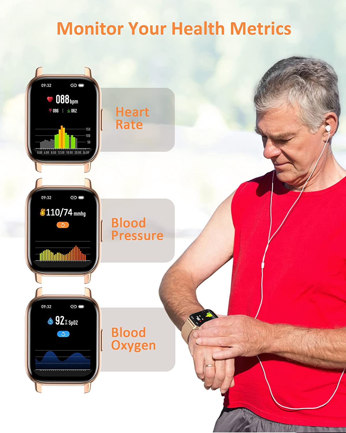 • ?【IP68 Waterproof】The fitness watch can be used with confidence in daily life, such as washing hands, rain, etc. But you'd better don't use it for swimming, diving, seawater or hot water, or a steam environment, because of its built-in speakers.