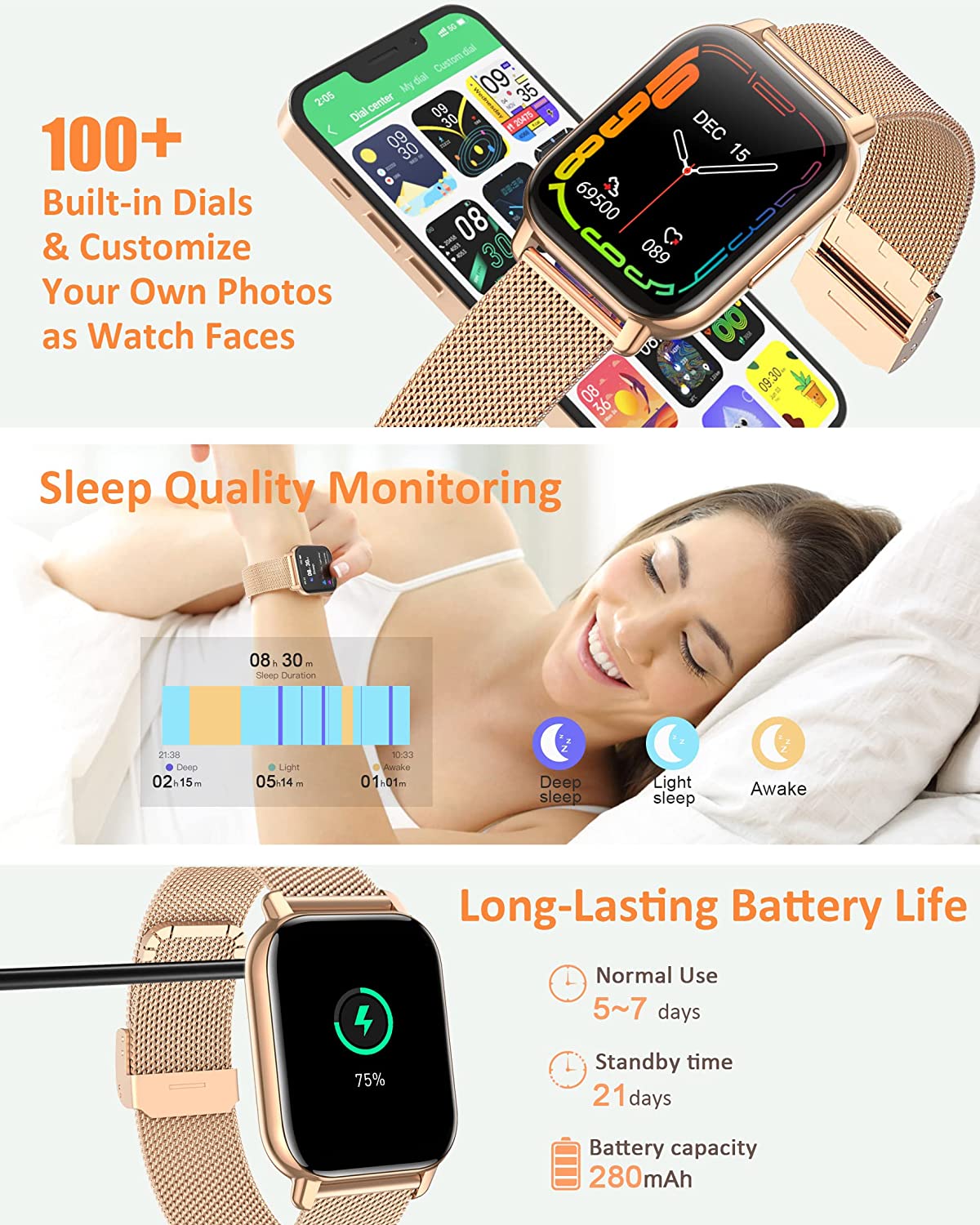 • ?【2023 Newest Bluetooth Call Dialing/Answering Watch】?Apart from showing you quick notifications, and tracking your health and exercise, our watches for women and men even can dial and answer calls. Especially for someone who doesn’t carry a smartphone always in their pocket; So when I receive a call, it’s easier and more convenient to take it on a smartwatch than to get up to find my phone.