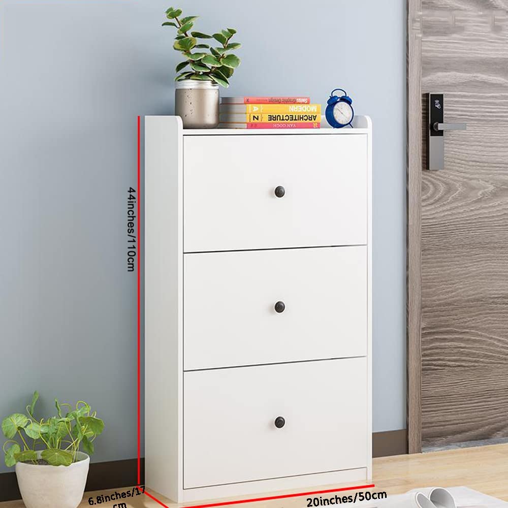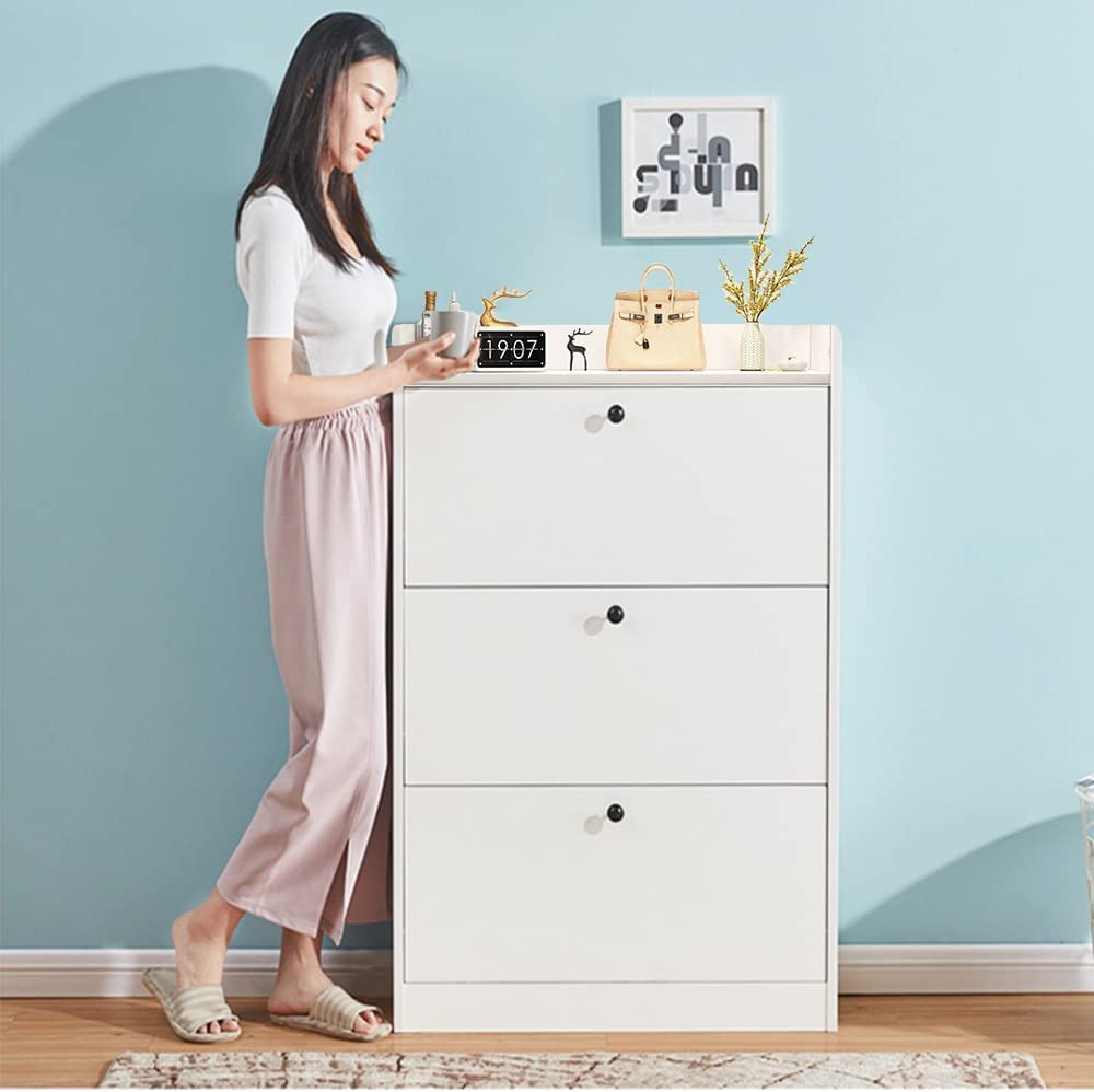 OIHYA Tipping Shoe Cabinet, 3 Drawer Shoe Rack Organizer Cabinet Freestanding Shoe Rack Cabinet for Entrances Hallways Corridor Saving Space