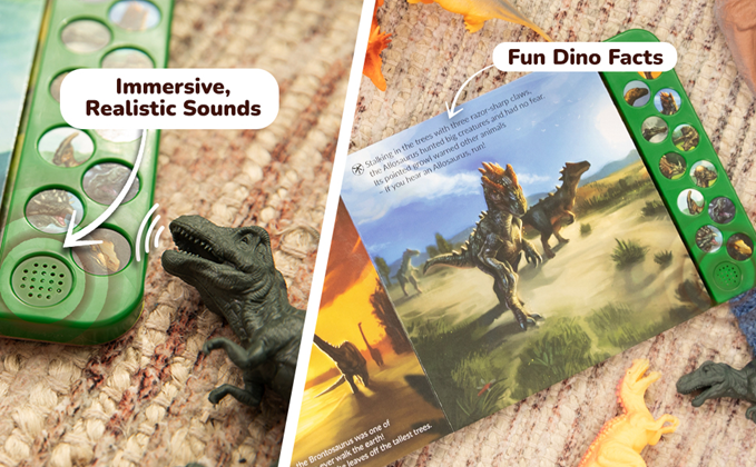 Li'l-Gen Dinosaur Toys for Kids - Interactive Dinosaur Sound Book with Realistic Dinosaur Roars - 12 Large Dinosaur Toys (7") for Kids and Toddlers - Interactive Set of Dinosaur Toys for Kids 3-5